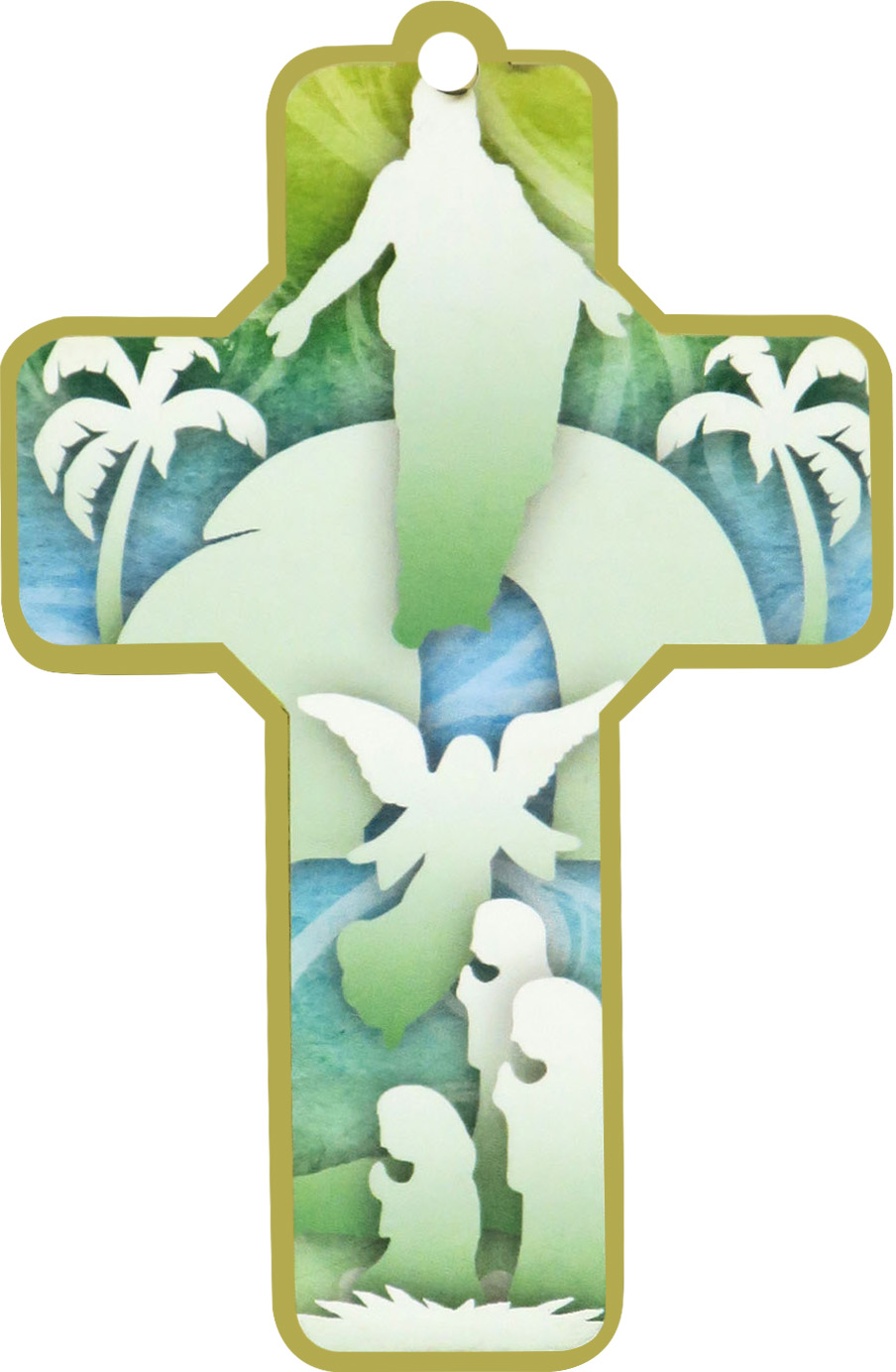 Questa busta contiene cartoncino che ricorda il Sacramento della Santa Pasqua unito ad esso vi è una croce di cm 9x13, anch'essa che ricorda questo Sacramento.