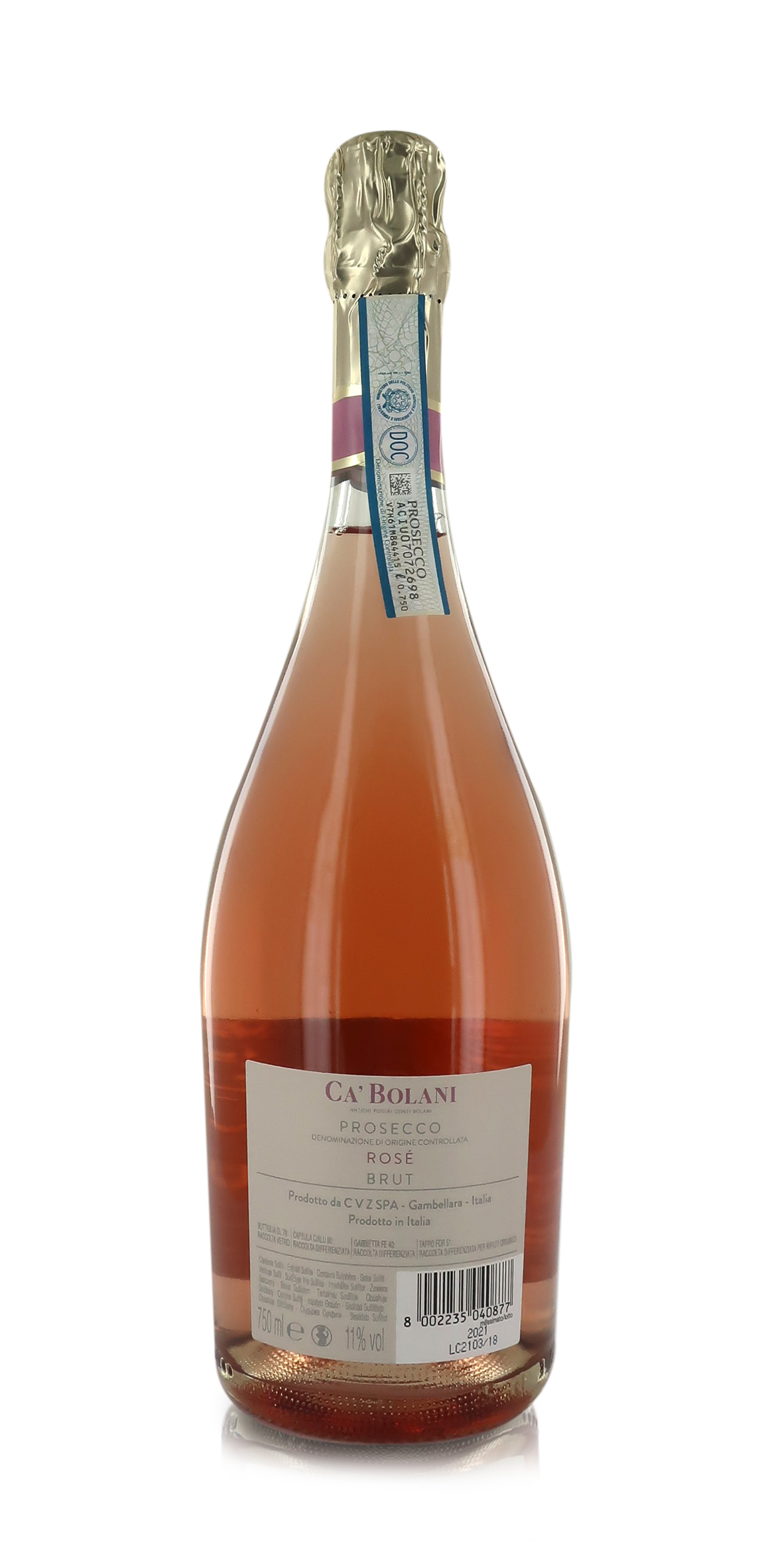Ca' Bolani Vino Prosecco DOC Spumante Rosé Brut, NV, 6 x 750 Ml
