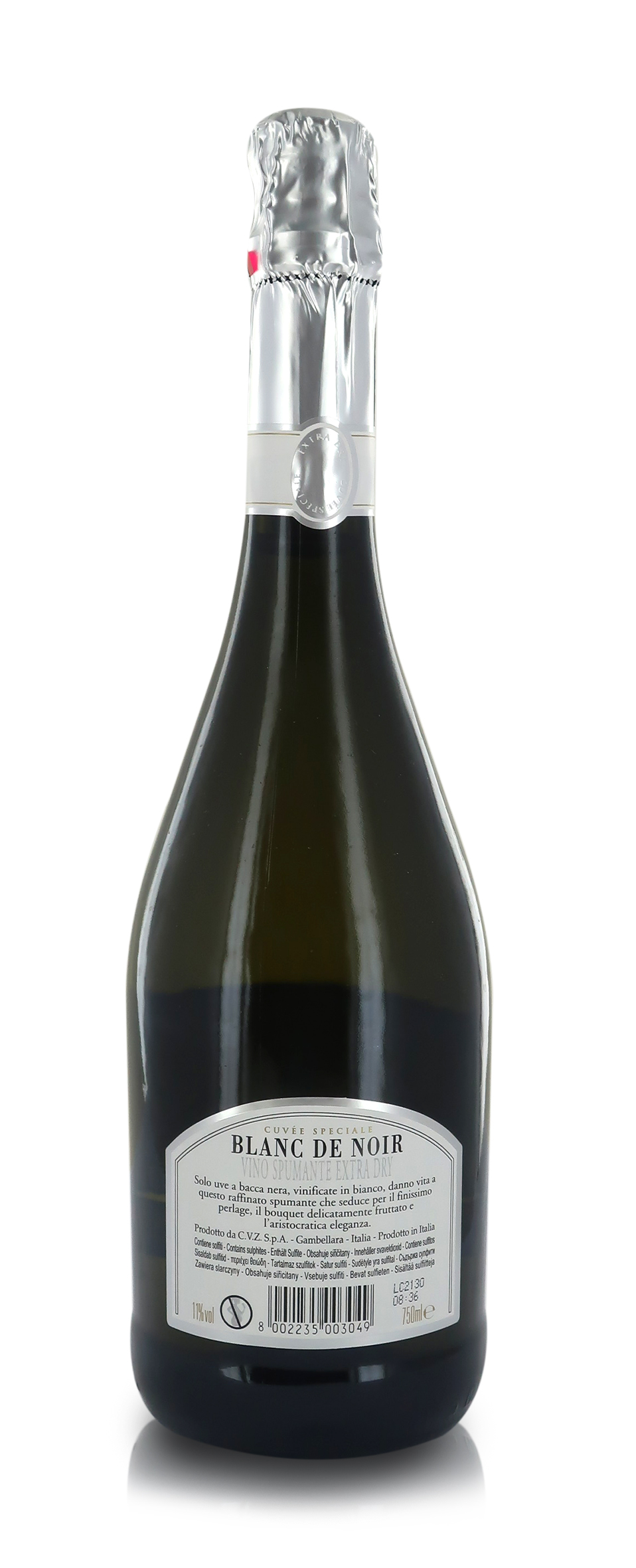 Solo uve a bacca nera, vinificate in bianco, danno via a questo raffinato spumante che seduce per il finissimo perlage, il bouquet delicatamente fruttato e l'aristocratica eleganza.