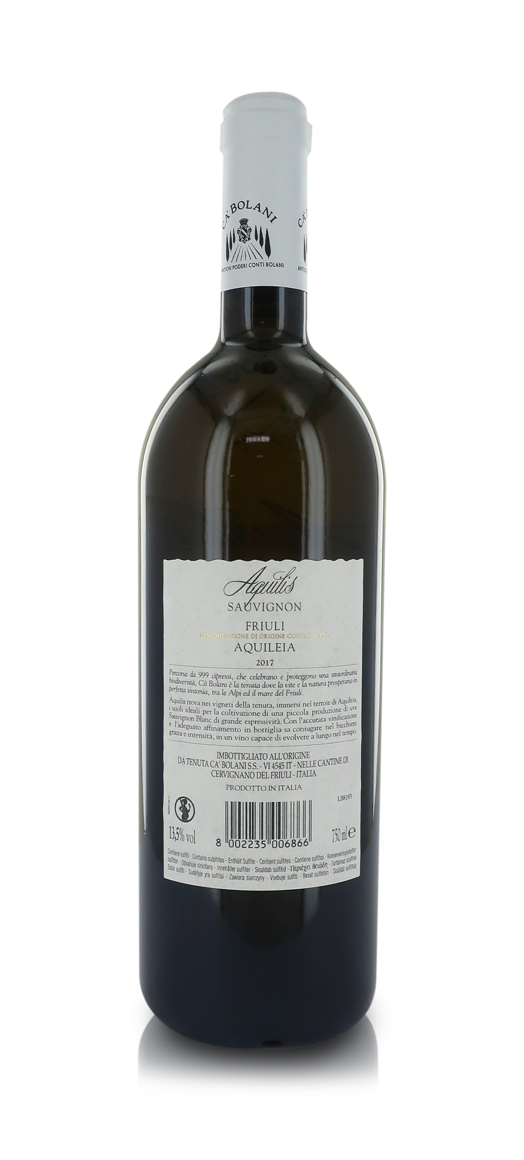 Confezione da 6 bottiglie, 750ml l’una in SCATOLA DI LEGNO. Aquilis trova nei vigneti della tenuta, immersi nel terroir di Aquileia, i suoli ideali per la coltivazione di una piccola produzione di uve Sauvignon Blanc di grande espressività. Con l’accurata vinificazione e l’adeguato affinamento in bottiglia sa coniugare nel bicchiere grazia e intensità, in un vino capace di evolvere a lungo nel tempo. Deve il suo nome all’antico insediamento celtico che conosceva già la viticoltura, e che nei secoli successivi grazie all’amore per il vino dei Romani che lo conquistarono divenne un centro di produzione di grande importanza per tutto l’Impero. Classificazione: Friuli DOC Aquileia / Zona di produzione: Vigneti di proprietà in località Molin di Ponte / Uve: Sauvignon Blanc / Colore: Paglierino brillante e intenso, con venature grigie. / Profumo: Vigoroso e ricco di sfumature che all’impronta varietale aggiungono complessità coniugando la grazia di frutto con la forza di vegetazione. / Sapore: Il sorso è appagante, abbigliato d’eleganza dal primo incontro al finale fumigante e altero, teso su piacevoli sensazioni verdi. / Abbinamenti: Paste fresche ripiene, arrosti, formaggi di media stagionatura. CONTIENE SOLFITI. ATTENZIONE: EVENTUALE INDICAZIONE DI ANNATA IN TESTI E/O FOTO È MERAMENTE INDICATIVA; L'ANNATA INVIATA, SOGGETTA A DISPONIBILITÀ, POTRÀ VARIARE DA QUELLA IN FOTO O NEI TESTI, SENZA QUESTO RAPPRESENTARE UN ERRORE O UN DIFETTO DELL'ORDINE. Ca' Bolani - Cervignano del Friuli, Udine, Italia. Percorsa da 999 cipressi che celebrano e proteggono una straordinaria biodiversità, Ca' Bolani è una tenuta dove la vite e la natura prosperano in perfetta sintonia. Incastonata tra le Alpi e il mare del Friuli a Aquileia, in un territorio dove la viticultura fu introdotta sin dall'epoca romana, la tenuta beneficia di condizioni ideali per la produzione vitivinicola.