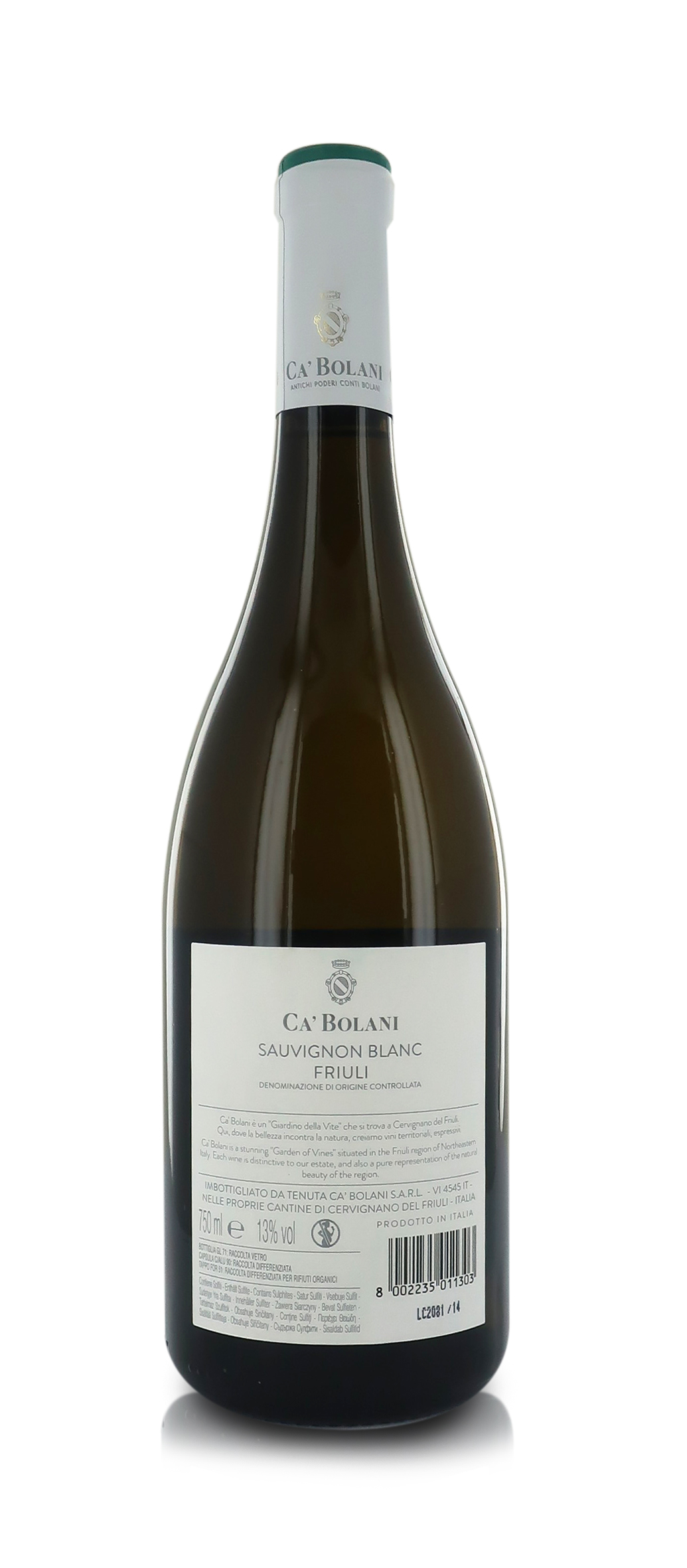 Dopo la separazione con le parti solide, il mosto viene fatto fermentare a temperatura controllata di 16-18 °C. L’aggiunta di lieviti selezionati consente di esaltare gli aromi tipici di questa varietà. Segue un periodo di affinamento sulle “fecce fini” che fissano le sostanze aromatiche. Classificazione: Friuli DOC Aquileia / Zona di Produzione: Aquileia, Friuli / Uve: Sauvignon / Note di degustazione - Colore: giallo brillante con riflessi verdognoli. - Profumo: un mosaico di profumi fruttati di pompelmo rosa, frutto della passione e pesca bianca che si accompagnano a note pronunciate di biancospino, foglia di pomodoro, salvia e menta. - Sapore: al palato la corrispondenza con le note olfattive è impeccabile; ampio, con una buona acidità che dona freschezza e fragranza; il finale è intenso e persistente. / Abbinamenti: ideale come aperitivo e in abbinamento a antipasti leggeri, primi piatti a base di pesce e piatti a base di verdure, in particolare asparagi bianchi o verdi. CONTIENE SOLFITI. ATTENZIONE: EVENTUALE INDICAZIONE DI ANNATA IN TESTI E/O FOTO È MERAMENTE INDICATIVA; L'ANNATA INVIATA, SOGGETTA A DISPONIBILITÀ, POTRÀ VARIARE DA QUELLA IN FOTO O NEI TESTI, SENZA QUESTO RAPPRESENTARE UN ERRORE O UN DIFETTO DELL'ORDINE. Ca' Bolani - Cervignano del Friuli, Udine, Italia. Percorsa da 999 cipressi che celebrano e proteggono una straordinaria biodiversità, Ca' Bolani è una tenuta dove la vite e la natura prosperano in perfetta sintonia. Incastonata tra le Alpi e il mare del Friuli a Aquileia, in un territorio dove la viticultura fu introdotta sin dall'epoca romana, la tenuta beneficia di condizioni ideali per la produzione vitivinicola: le brezze marine estive, la protezione offerta dalle Alpi, le forti escursioni termiche, la varietà dei terreni che digradando verso il mare. La tenuta vanta un patrimonio viticolo unico, un vero e proprio parco di vigne dal quale nascono vini da fragranza e pienezza aromatica distintive.