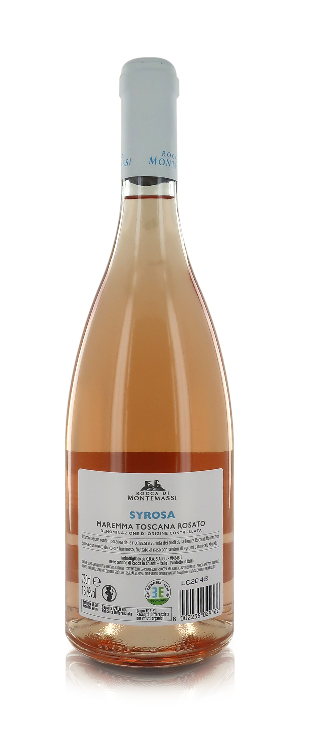 Confezione da 6 bottiglie, 750 ml l’una. Syrosa: Il nome riassume il vitigno (Syrah) e la tipologia del vino (rosé). La vendemmia precoce e una soffice pressatura delle uve permettono l’estrazione di un colore tenue e di un tannino delicato. Classificazione: Maremma Toscana DOC / Uve: Syrah con una parte di Sangiovese. / Colore: Rosa tenue con riflessi corallo. / Profumo: Al naso riflette il territorio della Maremma Toscana, con aromi di lavanda e piccoli frutti rossi, tipici del Syrah e note agrumate di mandarino. / Sapore: Ottimo equilibrio tra freschezza e vivacità con note di vaniglia, pesca e melograno. Setoso, fresco e persistente nel finale, espressione perfetta del territorio da cui proviene. CONTIENE SOLFITI. ATTENZIONE: EVENTUALE INDICAZIONE DI ANNATA IN TESTI E/O FOTO È MERAMENTE INDICATIVA; L'ANNATA INVIATA, SOGGETTA A DISPONIBILITÀ, POTRÀ VARIARE DA QUELLA IN FOTO O NEI TESTI, SENZA QUESTO RAPPRESENTARE UN ERRORE O UN DIFETTO DELL'ORDINE. Rocca di Montemassi è una Wine Farm nel cuore della Maremma Toscana più vera, alle pendici di Montemassi, dove nascono i grandi vini di Toscana. Rocca di Montemassi racconta una Toscana irriverente e audace, dove le emozioni vivono del fuoco della terra e della purezza del mare. Dal Vermentino ai Blend di Maremma, Rocca di Montemassi rappresenta un nuovo traguardo del vino toscano e la prova dell’eccellenza di un territorio creativo. Rocca di Montemassi svolge la sua attività rispettando principi della sostenibilità ambientale, etica e economica.