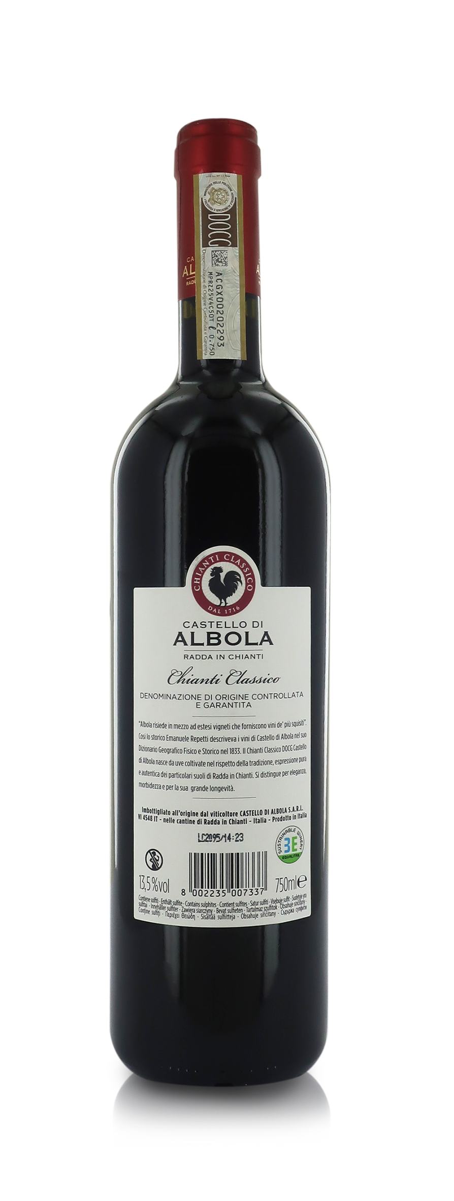 Confezione da 6 bottiglie, 750 ml l'una. Chianti Classico DOCG che racchiude tutte le caratteristiche salienti dei vigneti di Castello di Albola. Le uve Sangiovese sono raccolte scrupolosamente e vinificate in purezza nello stile tradizionale delle zone di alta collina nell’areale più vocato di Radda. Il lungo affinamento in grandi botti di rovere di Slavonia contribuisce a sottolinearne la personalità imperiosa, in cui spiccano l’importante mineralità, la freschezza del sorso e l’eleganza complessiva.