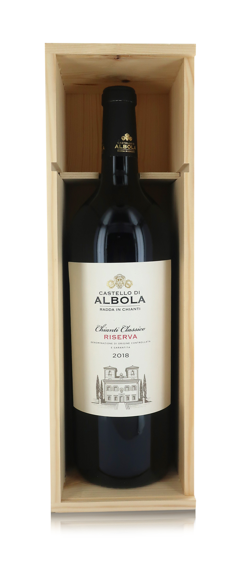 Chianti Classico DOCG Riserva, bottiglia MAGNUM da 1,5 litri in CASSETTA DI LEGNO, con coperchio scorrevole.