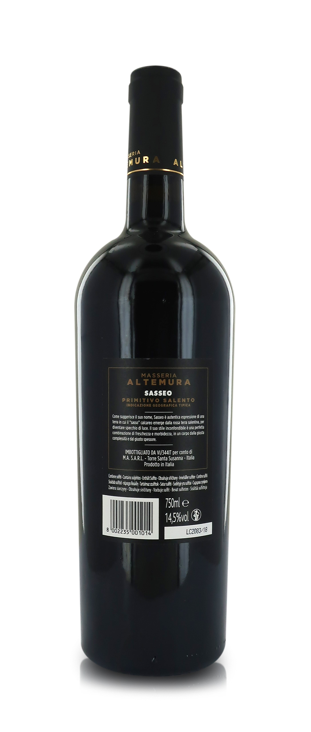 Masseria Altemura Vino Rosso Sasseo Primitivo Salento IGT, 750 Ml