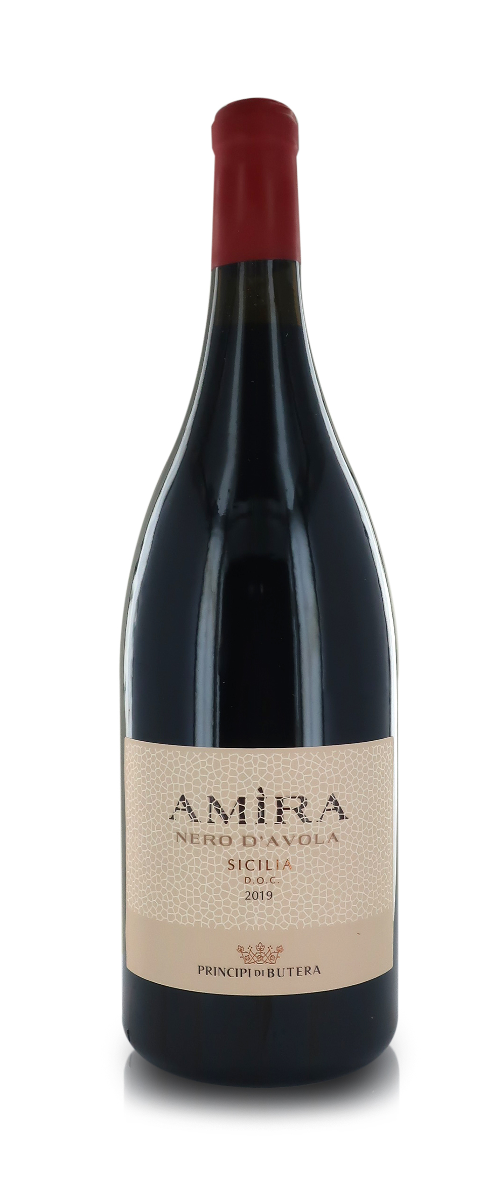 Bottiglia MAGNUM da 3 lt in CASSETTA DI LEGNO. Principe di una terra di miraggi e meraviglie, Amìra (dall’arabo amîr, principe) rappresenta l’essenza più pura del Nero d’Avola di Butera. Tra i cretti di un suolo asciutto e ricco di minerali preziosi nasce un rosso gentile e raffinato, frutto della profonda ammirazione per questo grande vitigno siciliano. Classificazione: Sicilia DOC / Zona di produzione: Butera, Sicilia Centro-Sud / Uve: 100% Nero d’Avola / Note di Degustazione: Colore: rosso rubino piuttosto scuro, brillante. / Profumo: sentori intensi di fiori di mandorlo, di viola e cenni di mirto, seguiti da una delicata speziatura e piacevoli note balsamiche. / Sapore: asciutto, fine, di bella struttura e di buona persistenza. Al palato trovano perfetta corrispondenza le stesse gradevoli note floreali e balsamiche percepite al naso. / Abbinamenti: Ottimo con piatti saporiti, carni alla brace e formaggi di buona stagionatura.