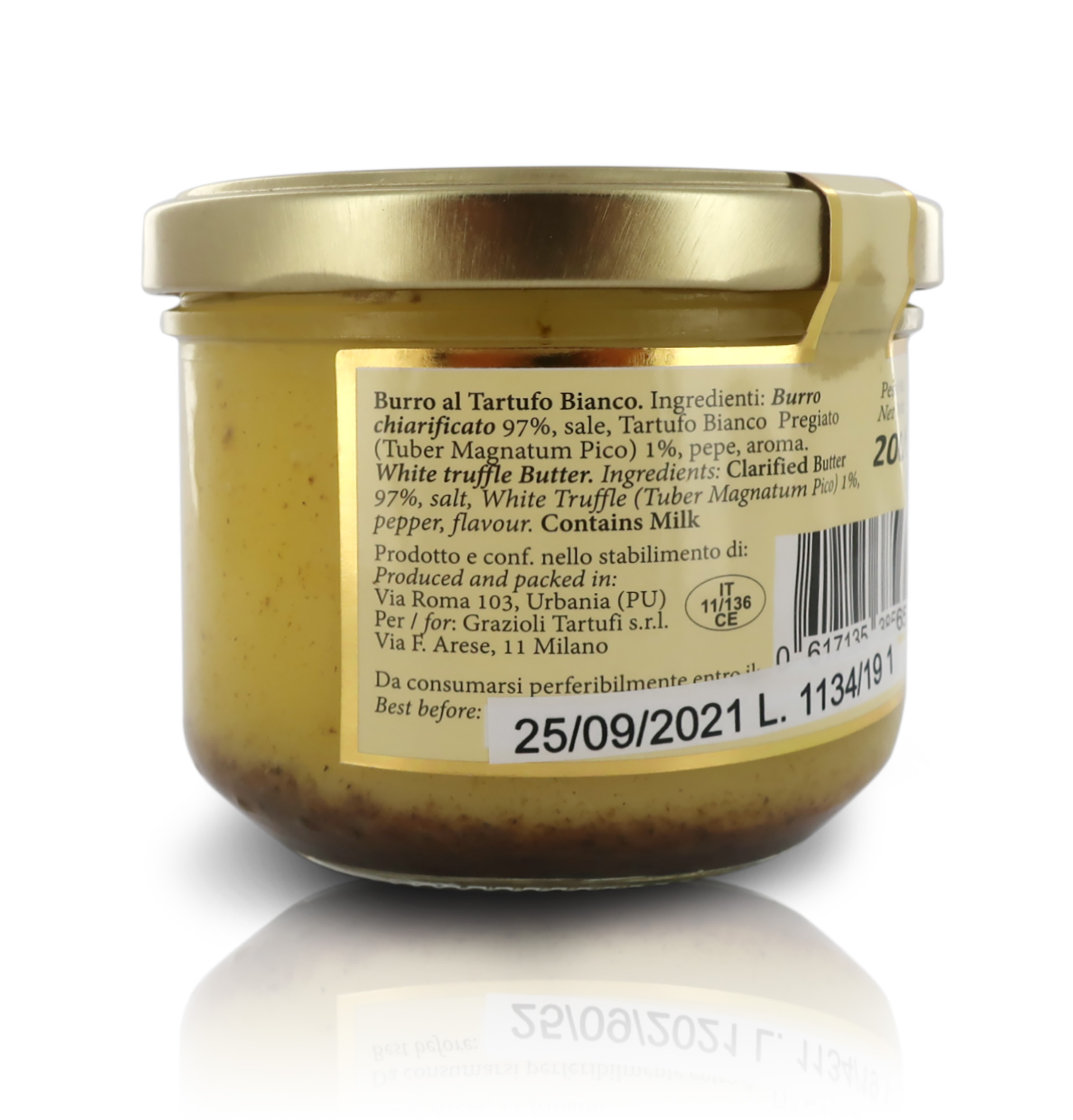 Grazioli Tartufi Burro al Tartufo Bianco, Burro Tartufato al Tuber Magnutum Pico, Burro al Tartufo per Risotti, Antipasti e Carni alla Griglia, 200 Grammi