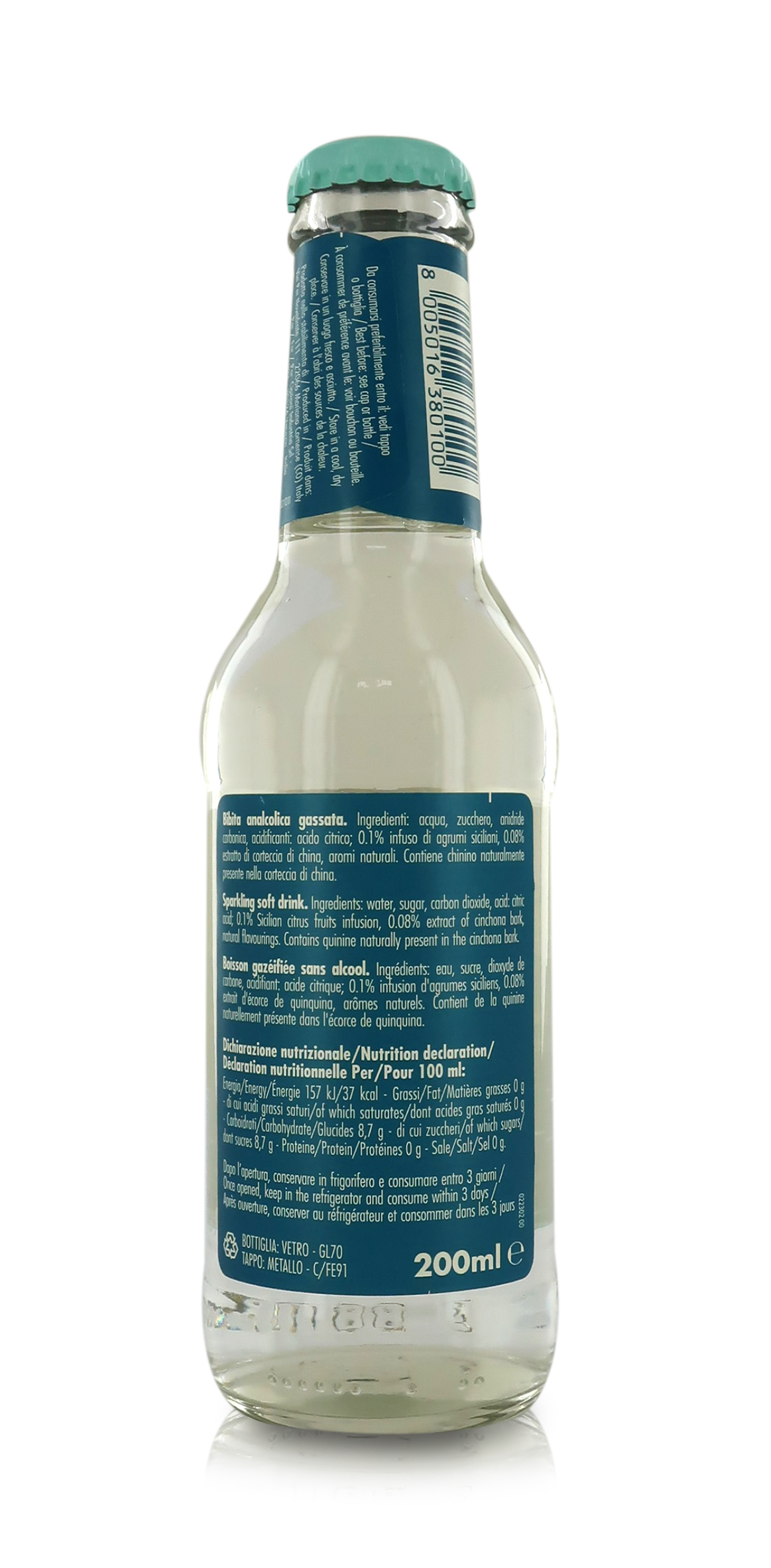 6 confezioni da 4 bottiglie di acqua tonica l'una (singola bottiglia 200 ml) per un totale di 24 bottigliette di bibita analcolica gassata. Variante di acqua tonica al gusto di agrumi.