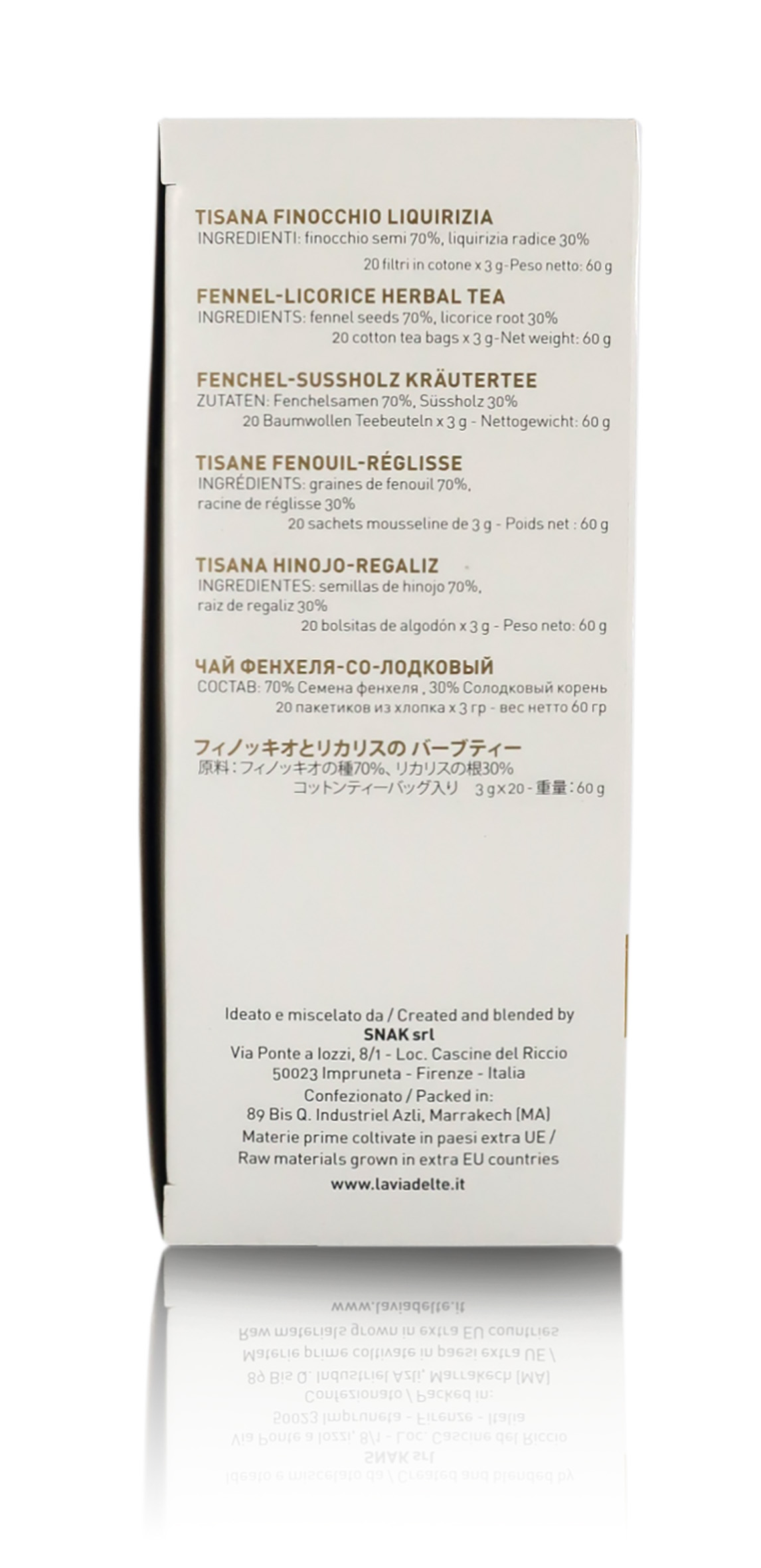 Ingredienti: Finocchio (semi) 70%, liquirizia (radice) 30%.