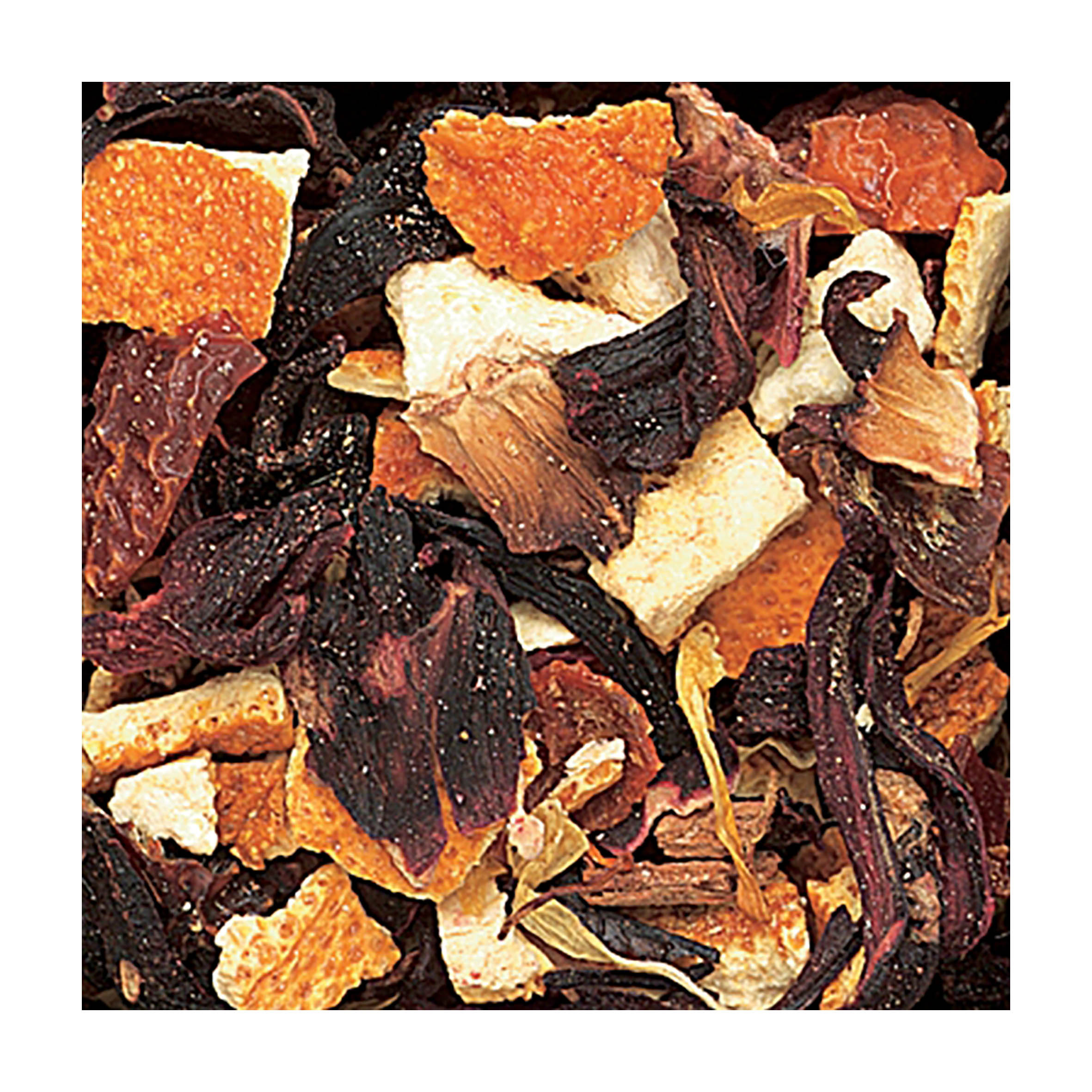 Ingredienti: carcadè, rosa canina, mela, arancio in scorza 35%, cannella 2,5%, aromi naturale di vaniglia 0,5%, calendula, aromi.