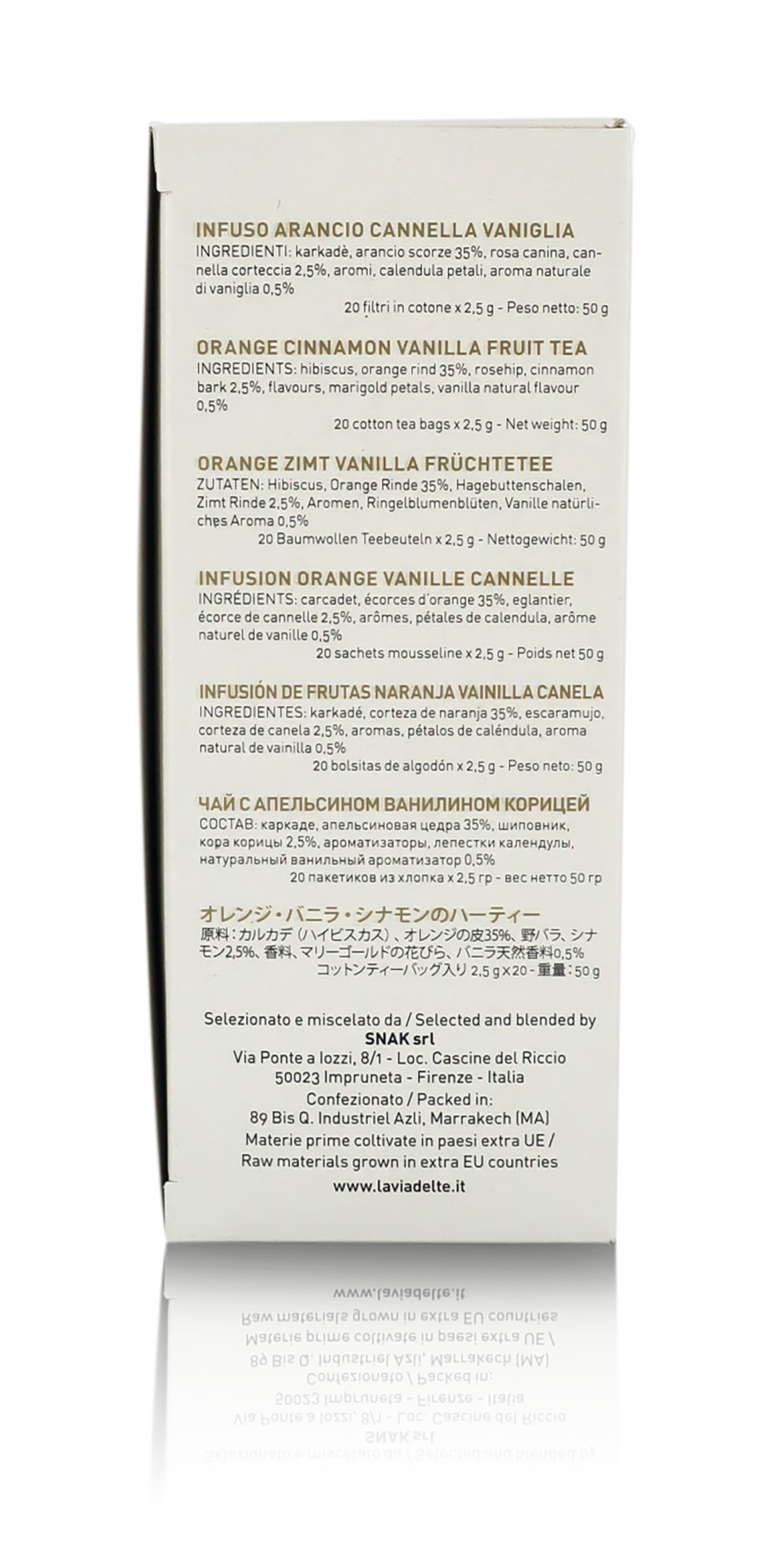 Tisana all'Arancia, Cannella e Vaniglia, Carcadè Aromatizzato, Astuccio con 20 Filtri da 2,5g - 50g