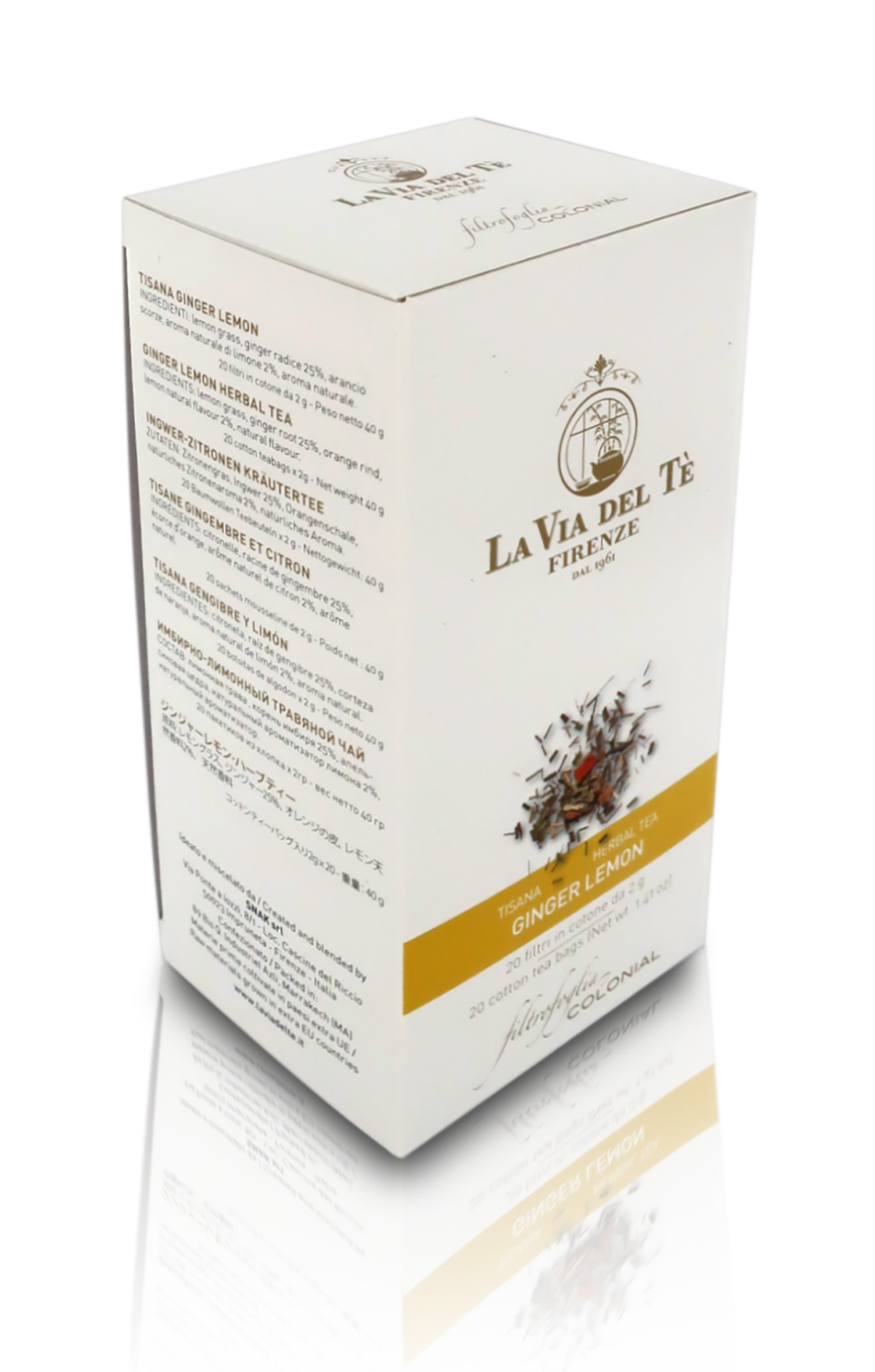 Tisana Ginger Lemon, Tisana Rivitalizzante alla Citronella e Zenzero, Astuccio con 20 Filtri da 2g - 40g