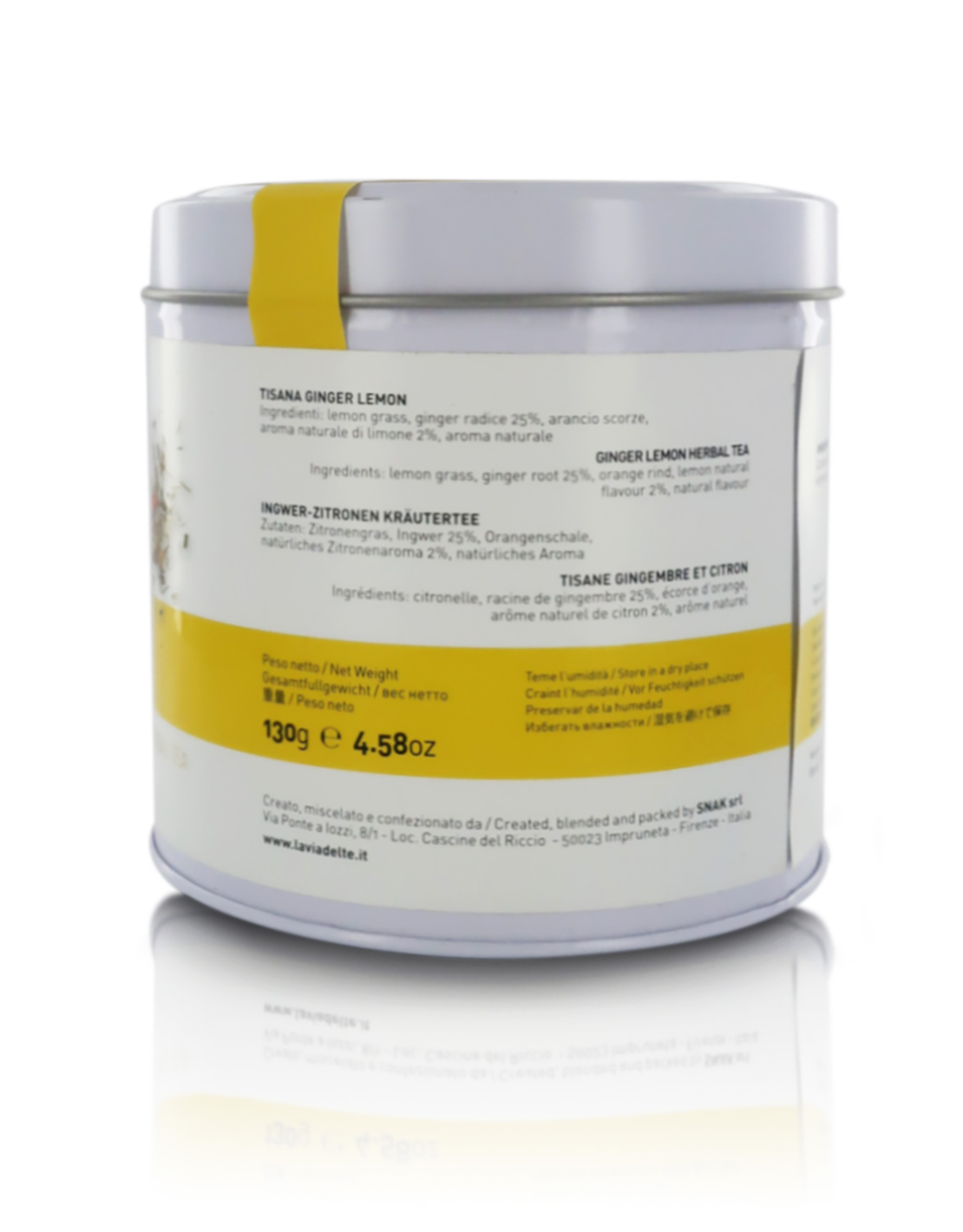Tisana Ginger Lemon, Tisana Rivitalizzante alla Citronella e Zenzero in Barattolo di Latta, 130g