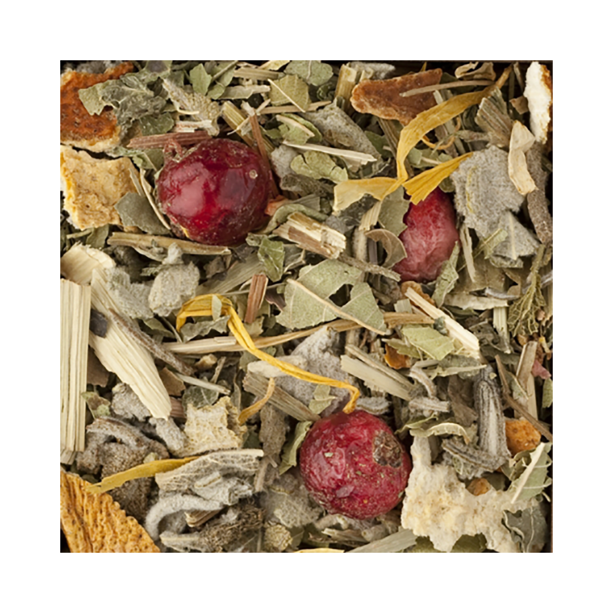 Ingredienti: Melissa, verbena, salvia, lemon grass, limone scorze, ribes rosso, calendula petali, aroma naturale.