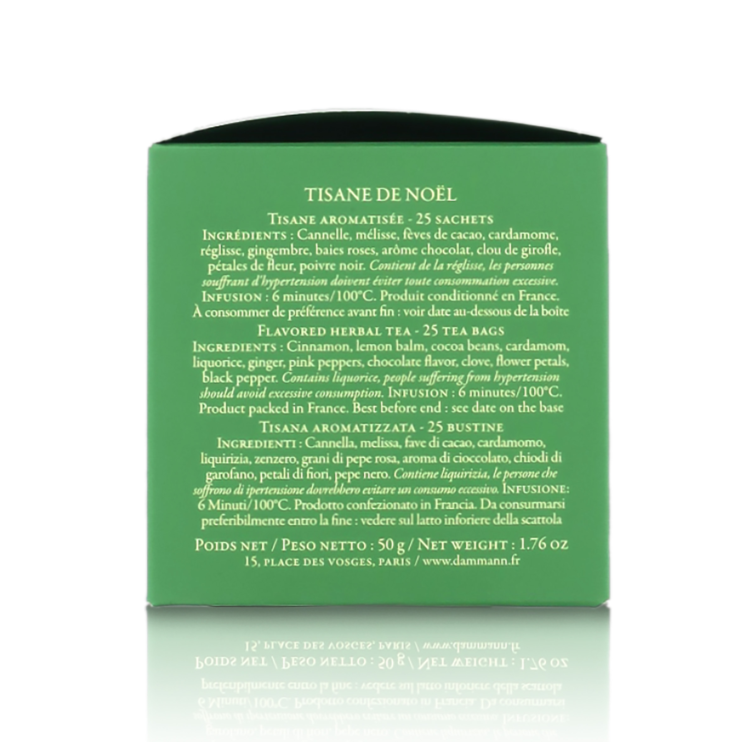 Tisane De Noël, Tisana Natalizia Aromatizzata, Edizione Speciale Natale 2020, 25 Filtri Cristal, 50 Grammi, Dammann Frères