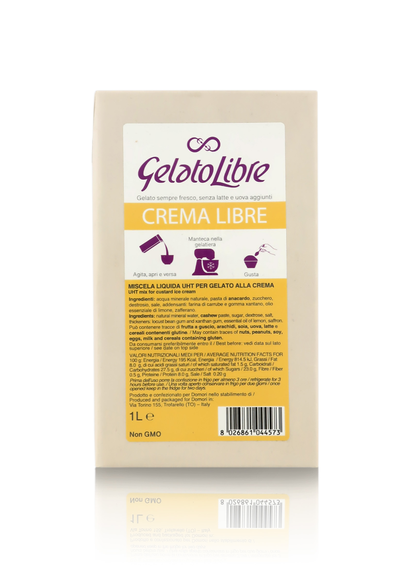 Gelato Libre, Gusto Crema, Preparato per Gelato Vegano senza Latte né Uova, Brick da 1 Litro