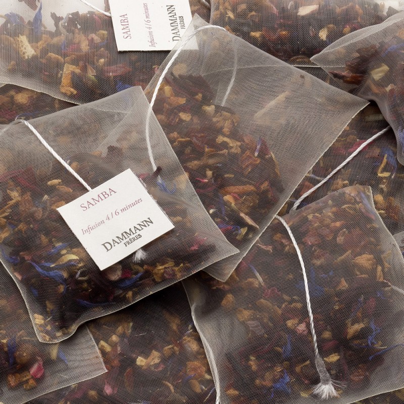 Damman Carcadet Samba - Miscela di fiori di hibiscus, pezzi di mela, scorze rosa canina e arancia, note mango e frutti tropicali, 24 filtri, Dammann Frères