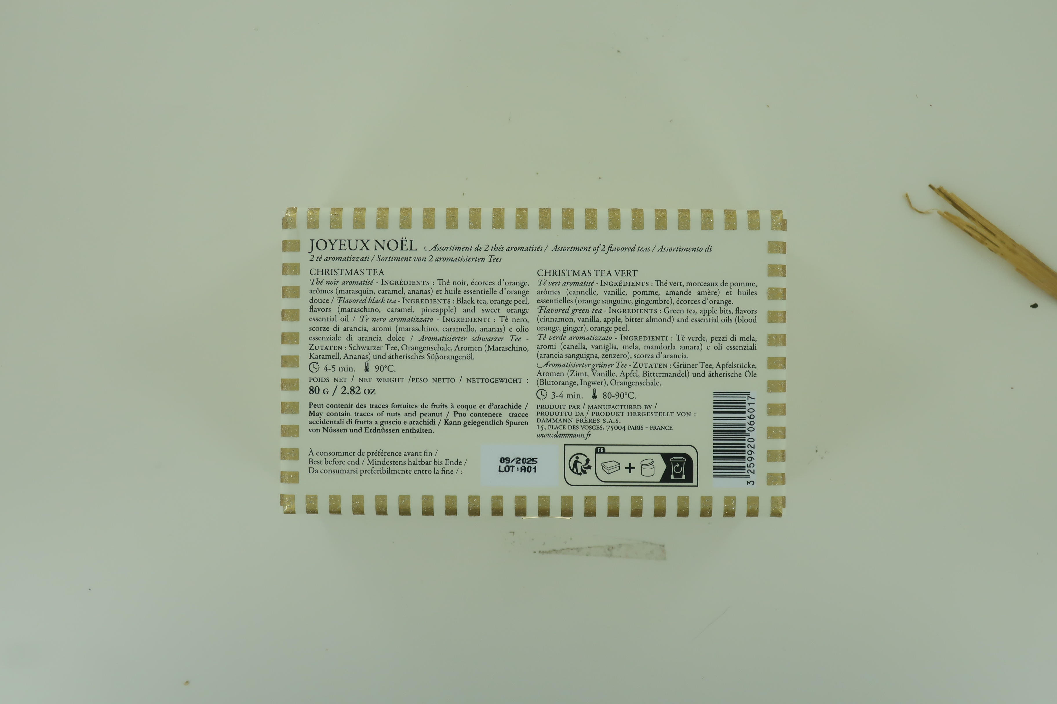 Cofanetto con 2 Latte di Tè di Natale ''Joyeux Noël'', Set Regalo Assortimento di 2 The Natalizi Fruttati in Latta, 80g, Dammann Frères
