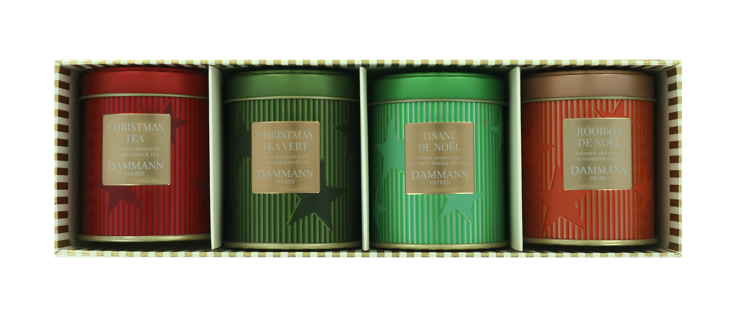 Cofanetto con 4 Latte di Tè di Natale ''Il Était Une Fois'', The Natalizi Fruttati, 160g, Dammann Frères