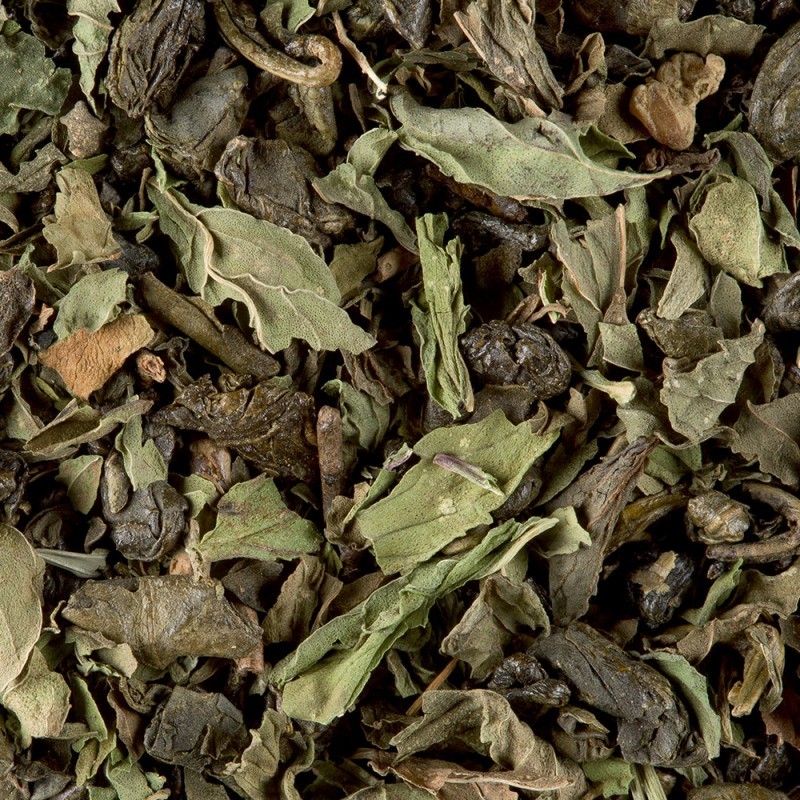 Tè N° 5 - The Vert à la Menthe: tè verde, 25g. Ingredienti : Tè verde, fogli di menta (24.6%) e di menta piperita (4.9%), aroma naturale di menta. //