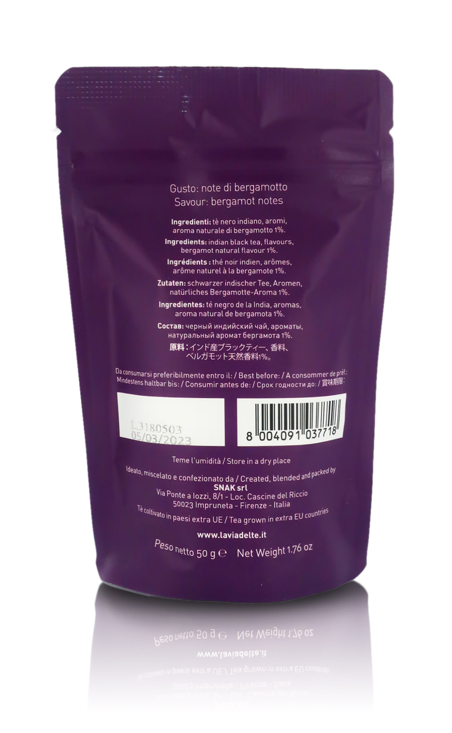 Ingredienti: Tè nero Darjeeling, aroma naturale di bergamotto, aromi.