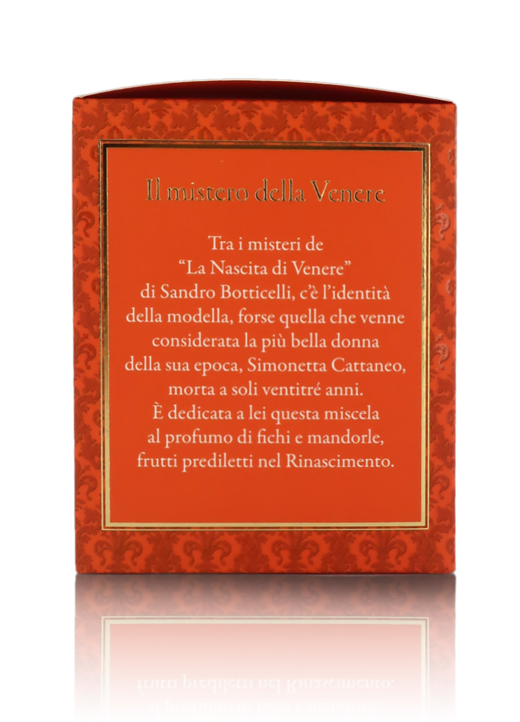 Tè sfuso in foglia dedicato alla Venere di Botticelli. Si tratta di una miscela di tè neri, tra cui tè nero indiano, petali di rosa moscata e calendula, mela, mandorle e fichi in pezzi. Aromi: intenso e dolce, di mandorla e fichi. Colore: arancio scuro. Sapore: pieno, morbido, dolciastro.