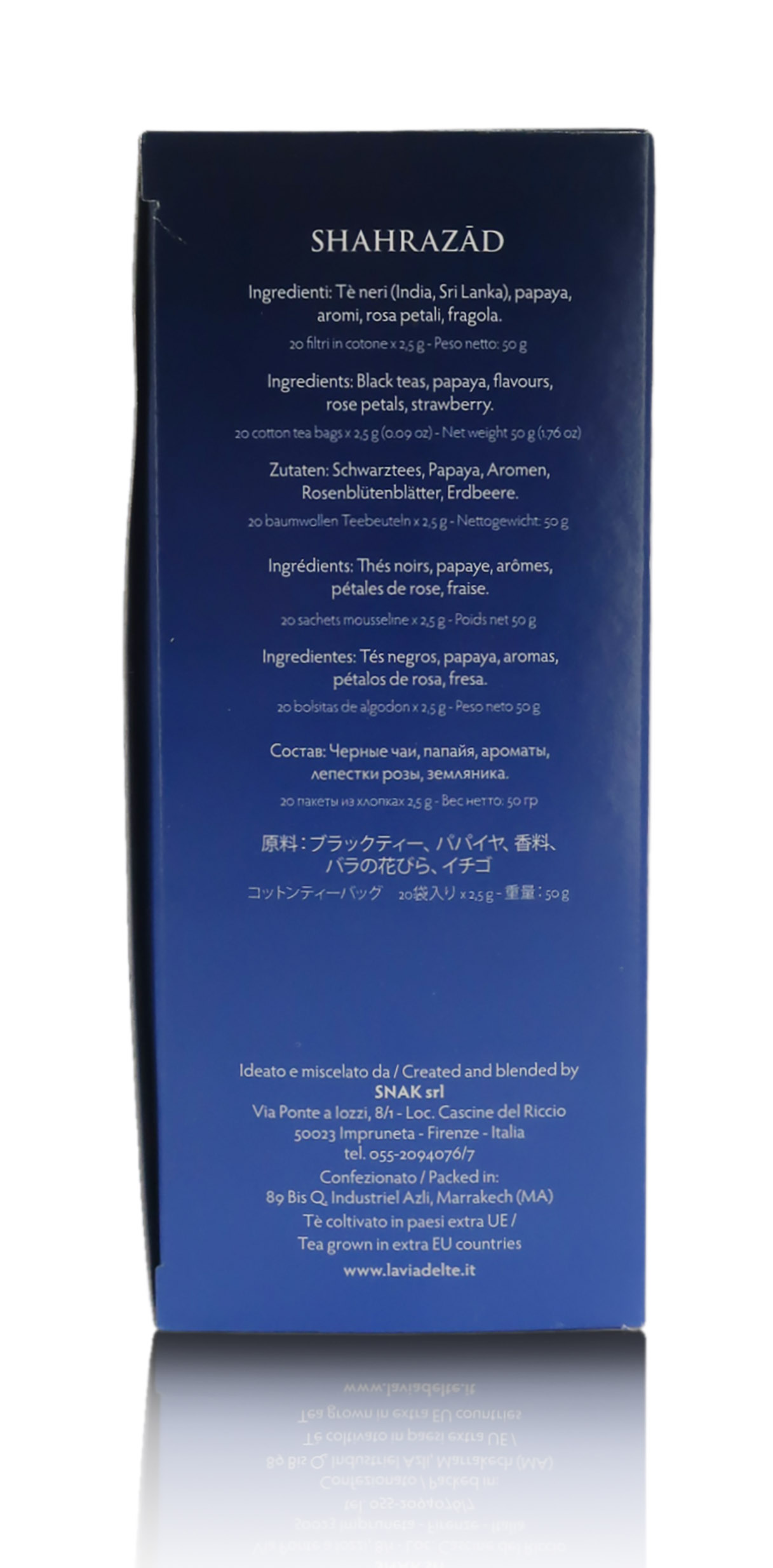 Miscela di tè neri indiani e di Ceylon in foglia intera, piacevolmente profumata. Si tratta di un mélange raffinato di tè neri di alta qualità, ispirato alla bella principessa delle “Mille e una Notte” e al fascino dell’Antica Persia, dal profumo evocativo di frutta matura, accompagnato da note marcate che ricordano il melograno, simbolo di amore e rinascita.