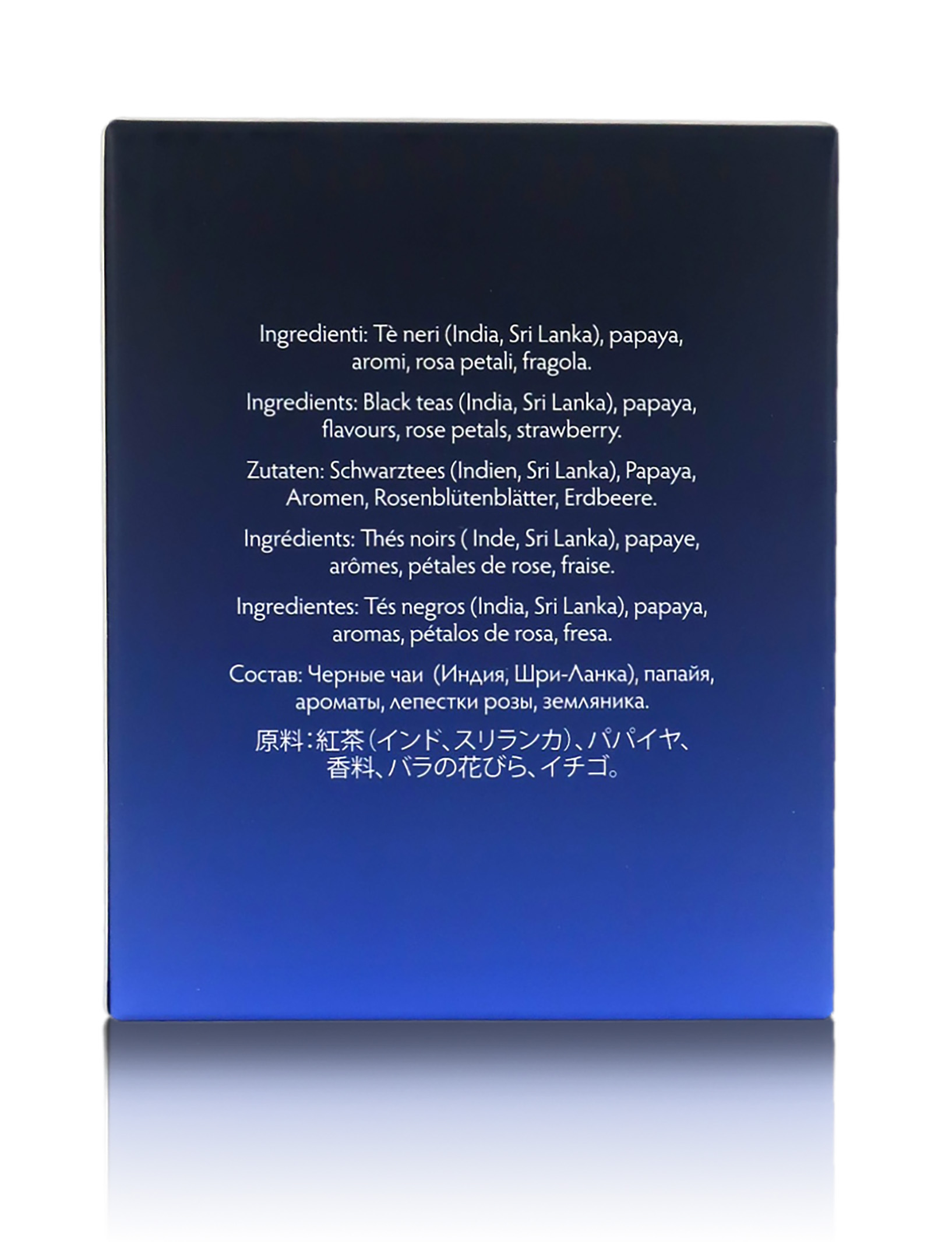 Ingredienti: Tè neri (India, Sri Lanka), papaia, aromi, rosa in petali, fragola.