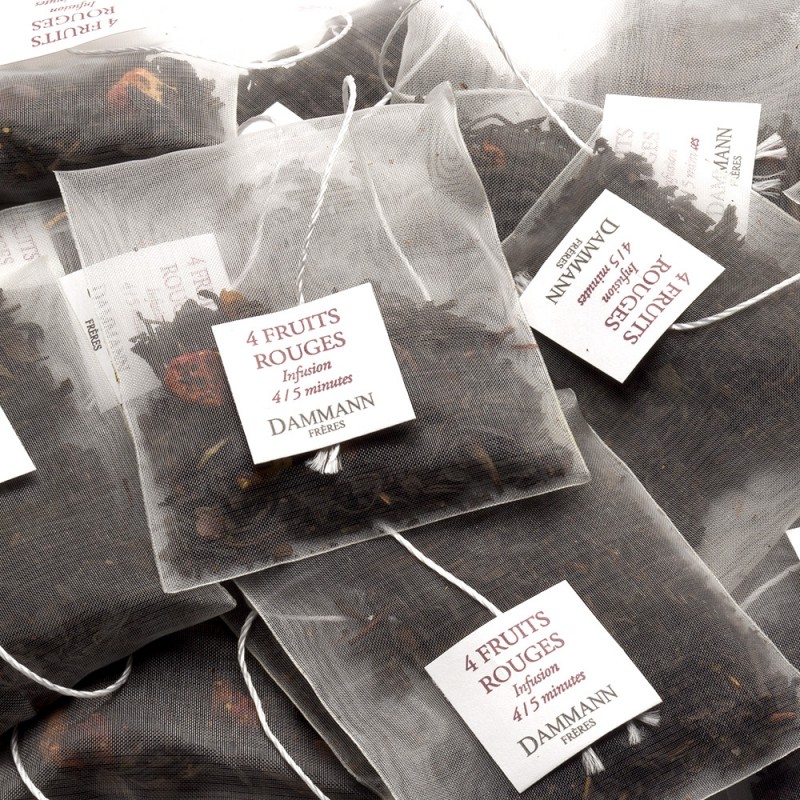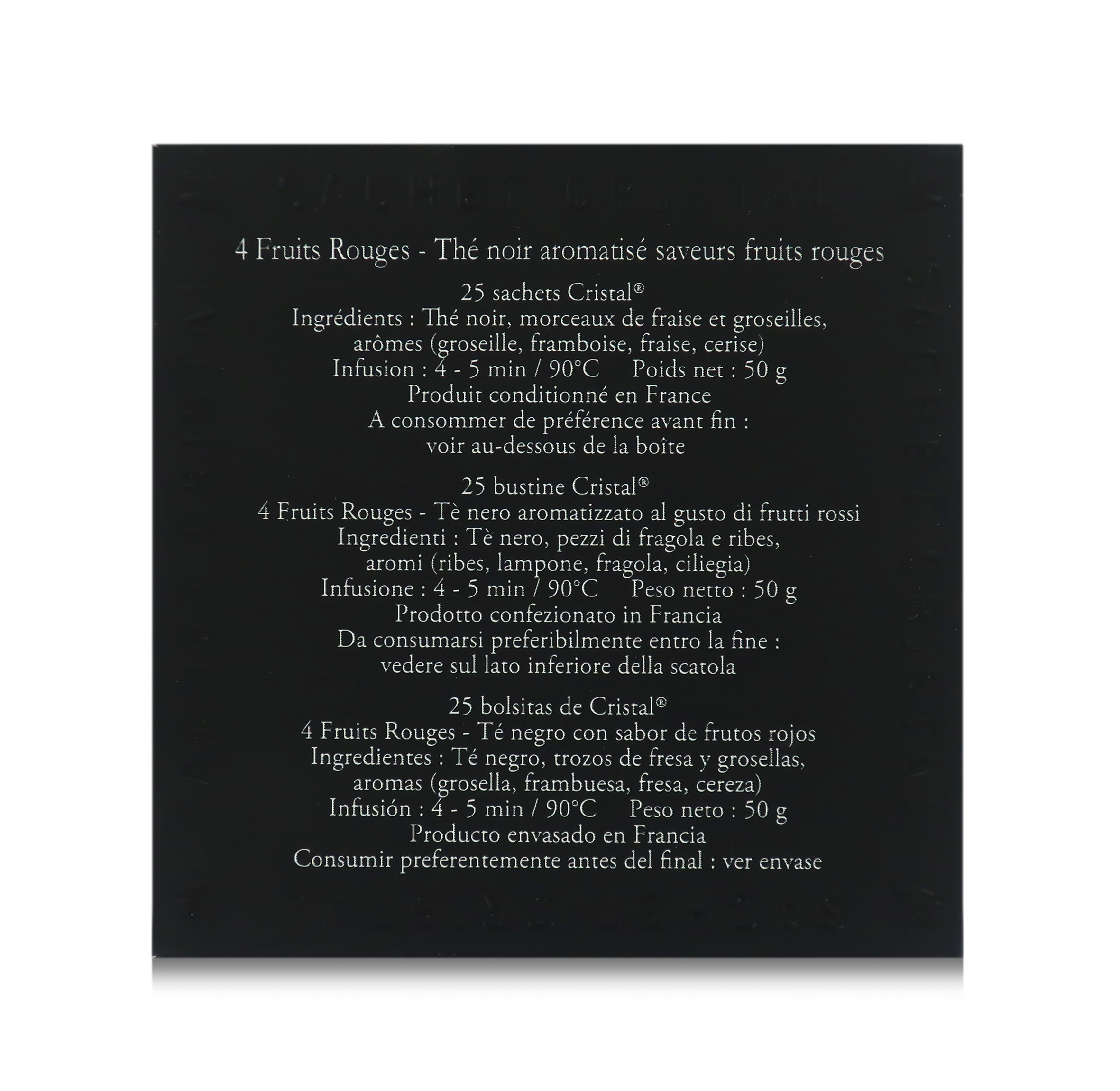 Il tè nero 4 Fruits Rouges è contenuto in esclusive e pratiche bustine "Cristal".
