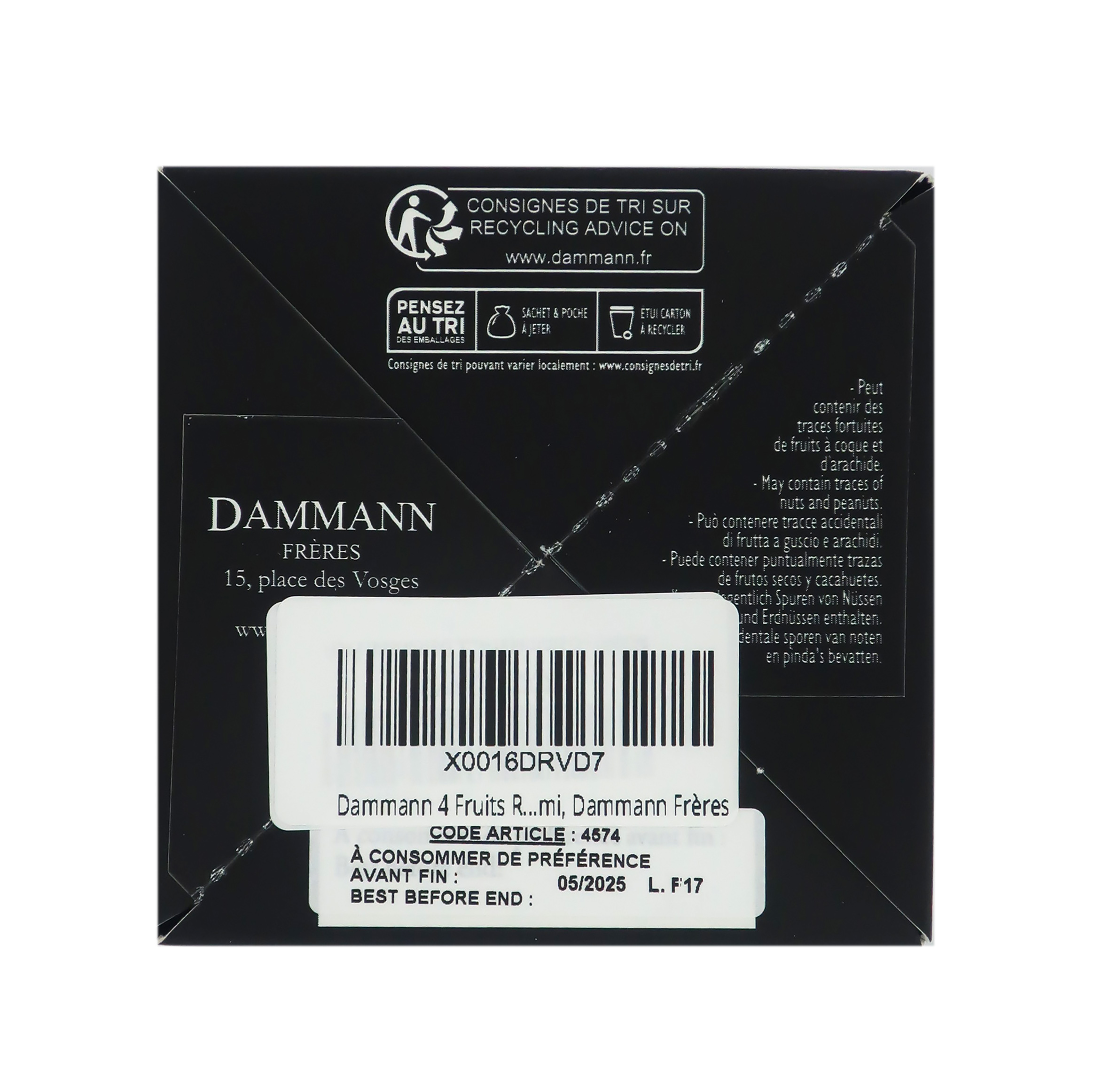 Dammann 4 Fruits Rouges - Tè nero aromatizzato, 25 filtri Cristal, 50 grammi, Dammann Frères