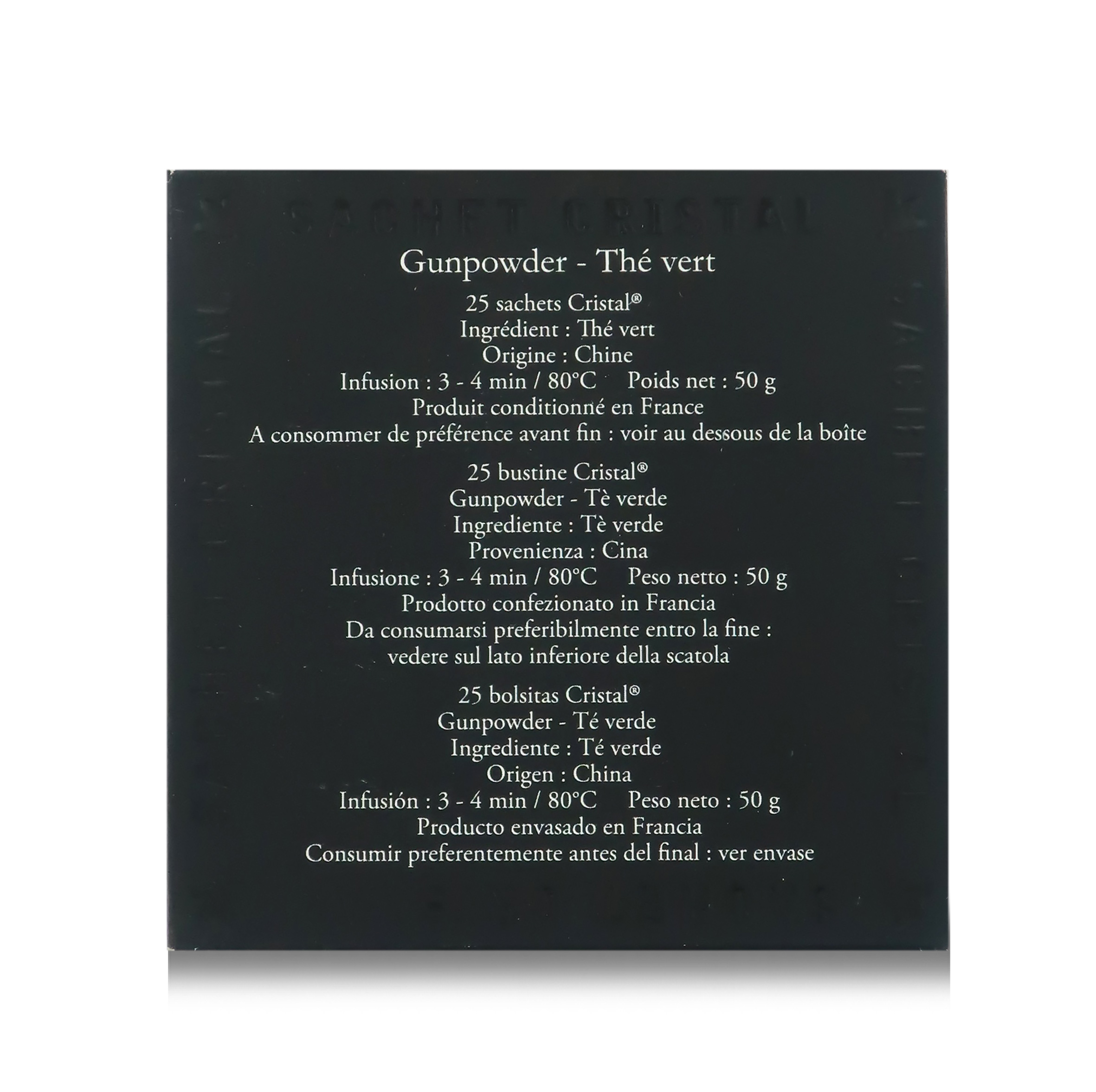 Il tè verde Gunpowder di Dammann Frères è contenuto in esclusive e pratiche bustine "Cristal".
