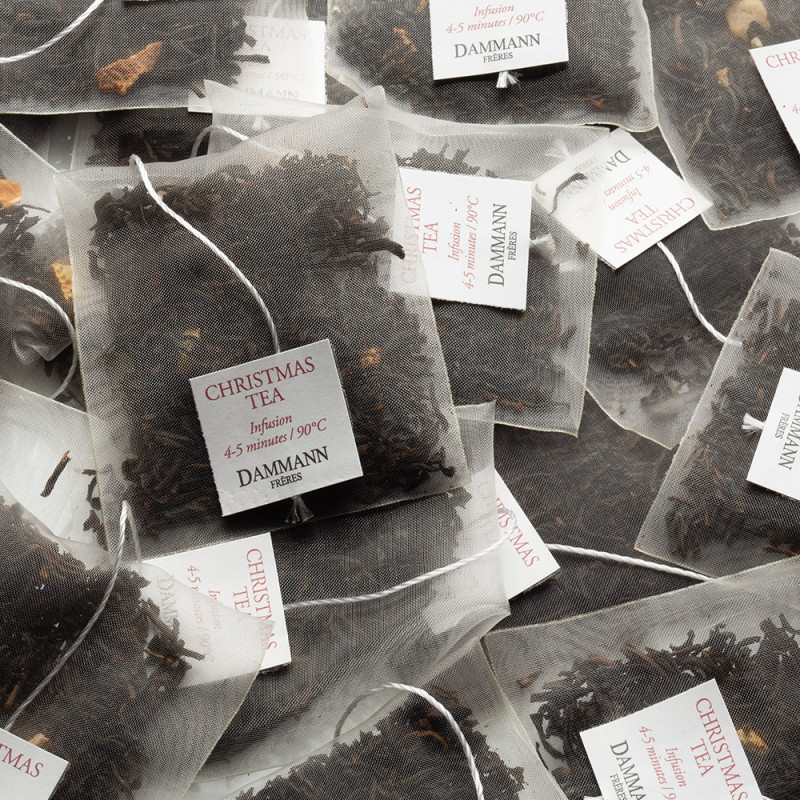 Il Christmas Tea di Dammann Frères è contenuto in esclusive e pratiche bustine "Cristal" incartate singolarmente.