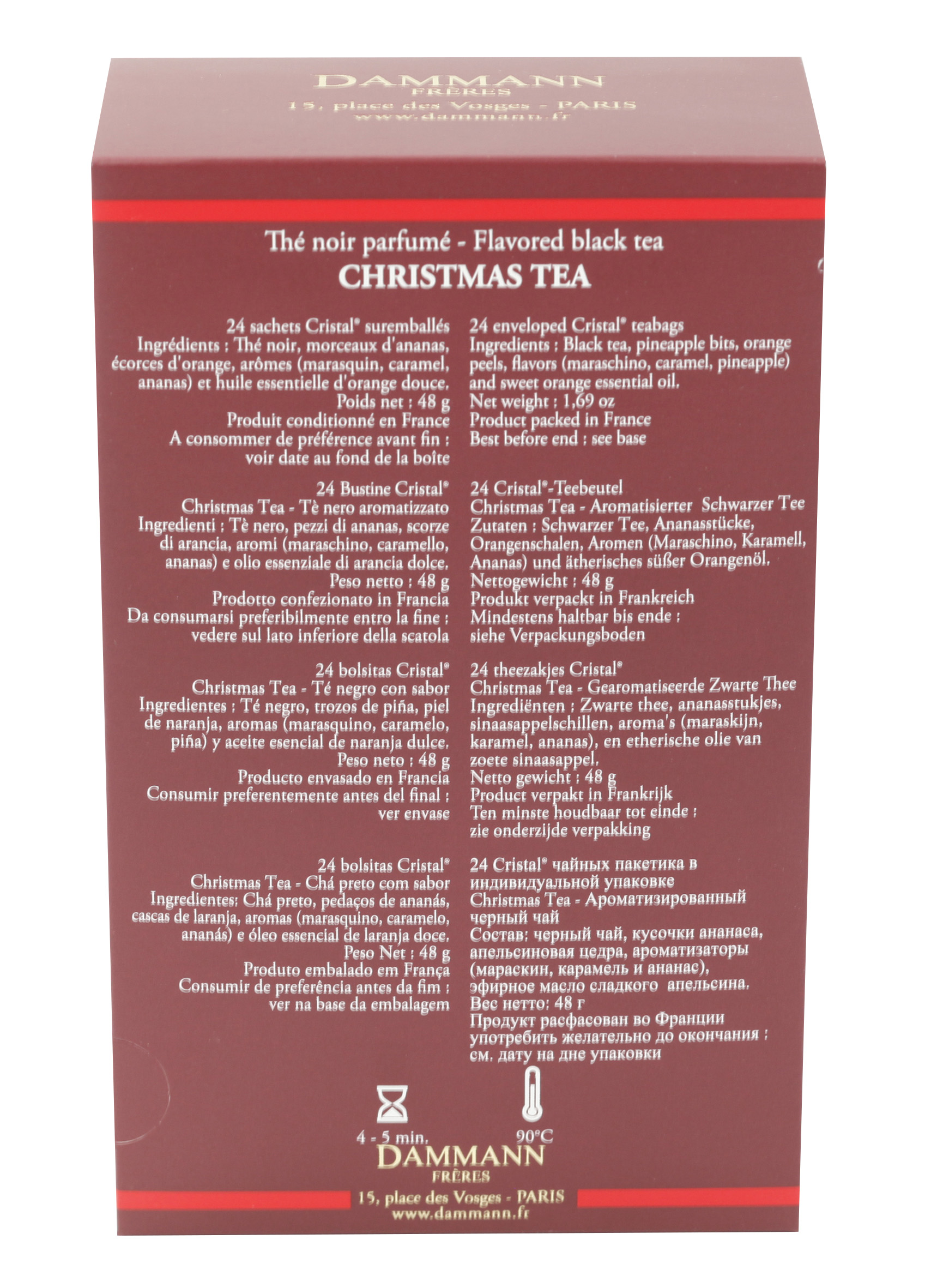 Dammann Christmas Tea - Tè nero arricchito con pezzettini di frutta, scorza d'arancia e caramello, maraschino e ananas , 24 filtri, Dammann Frères