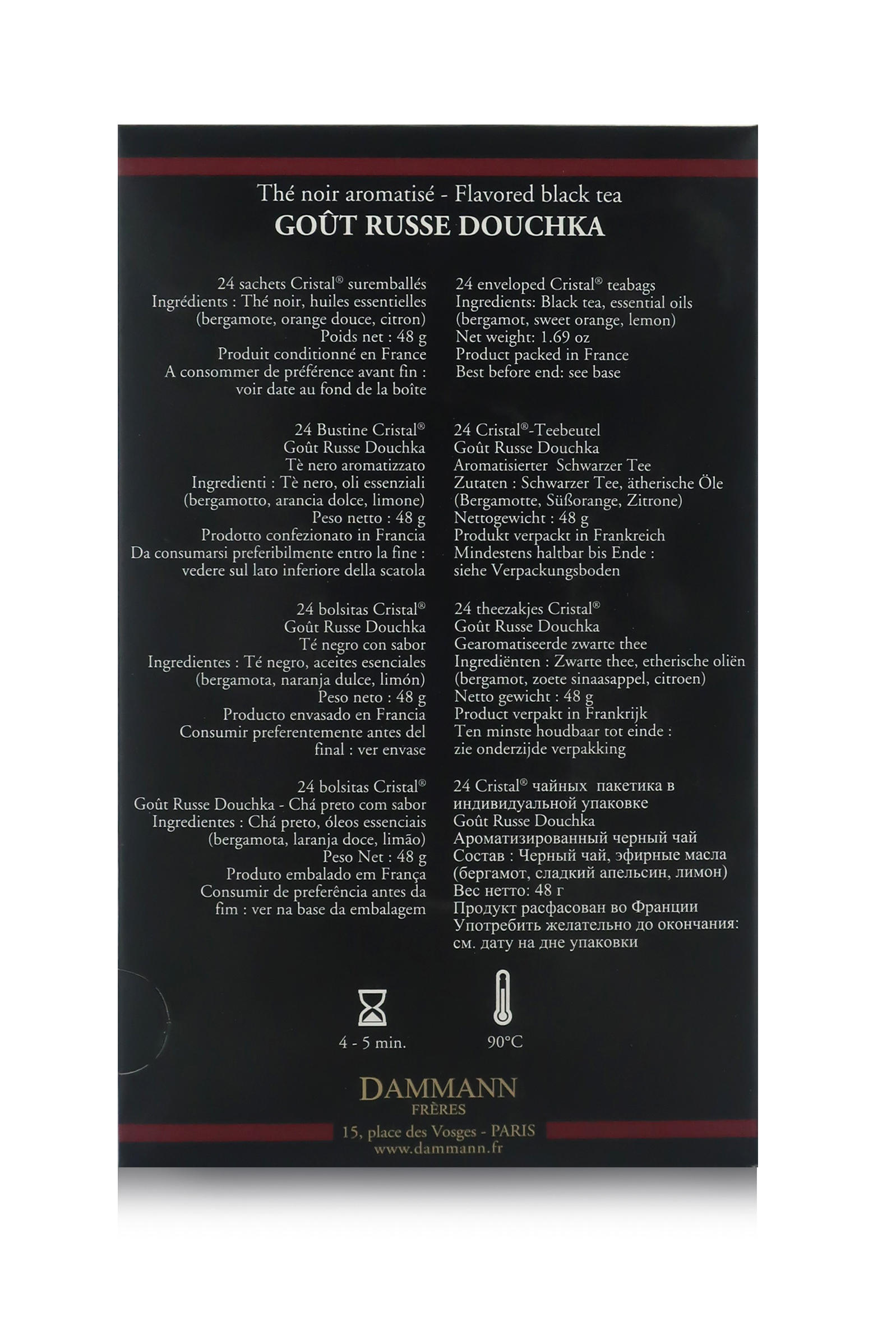 Dammann Goût Russe Douchka - Tè nero aromatizzato con oli essenziali di bergamotto, limone e arancia dolce, 24 filtri, Dammann Frères