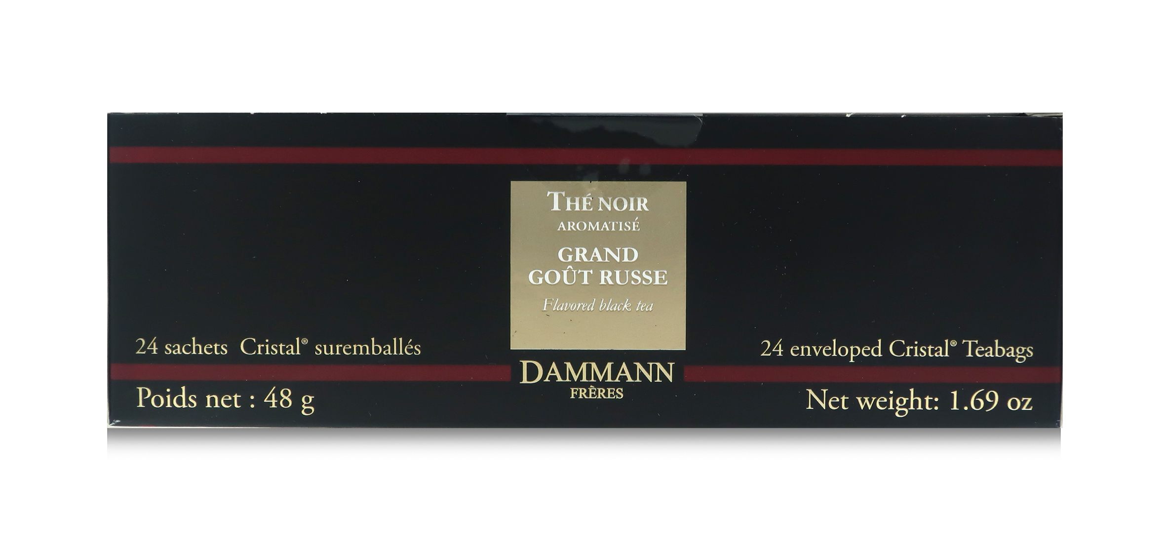 Il tè nero agli agrumi Grand Goût Russe è contenuto in esclusive e pratiche bustine "Cristal" incartate singolarmente.