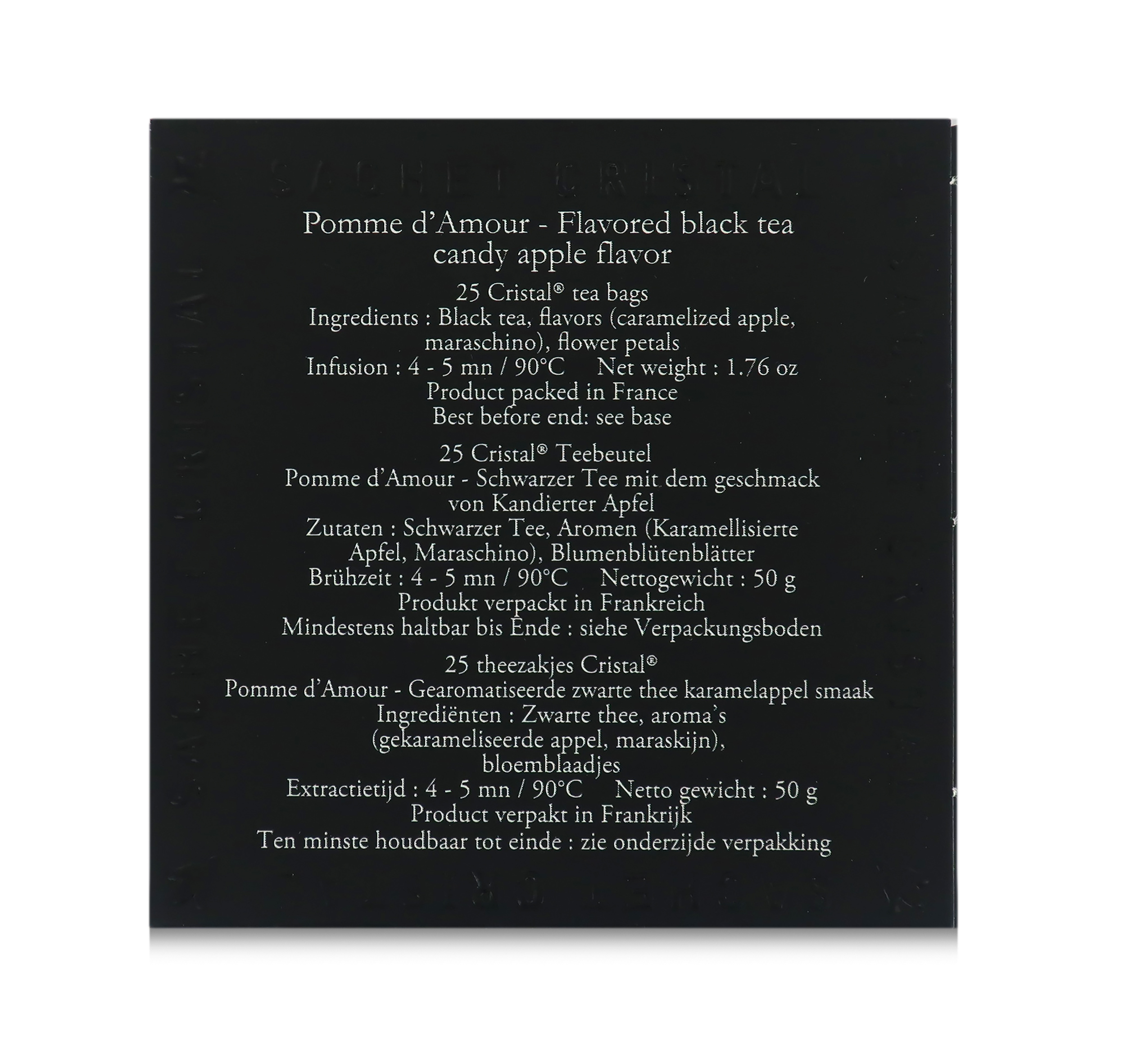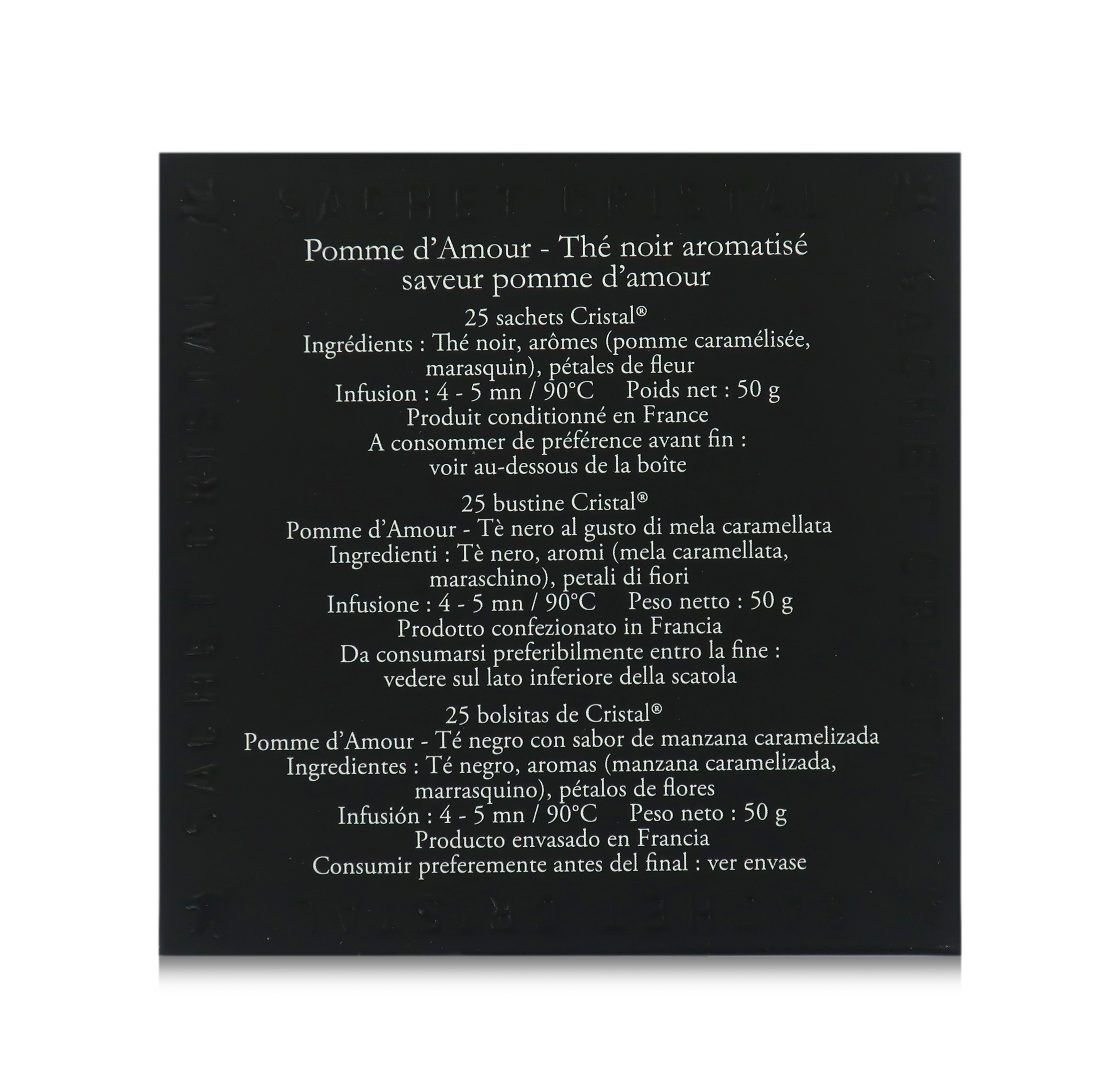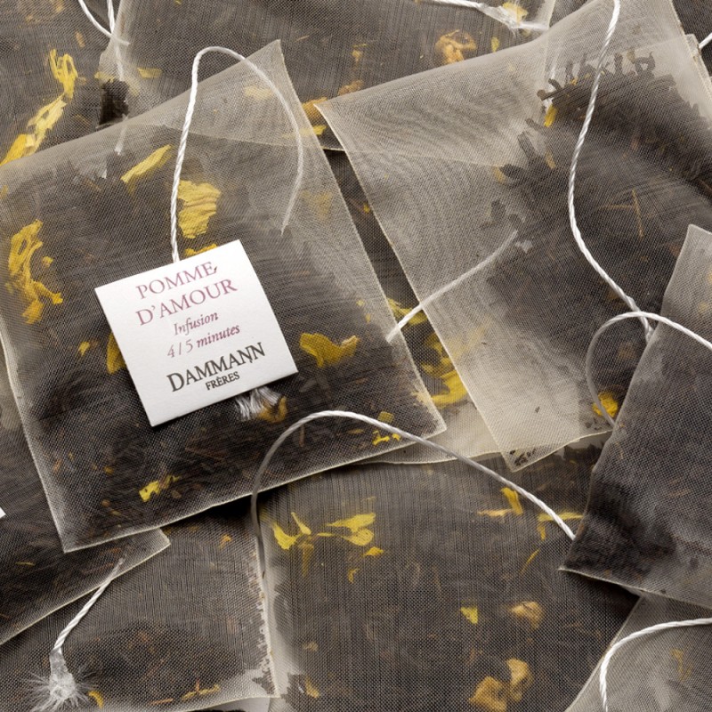 Il tè nero Pomme d'Amour è contenuto in esclusive e pratiche bustine "Cristal".