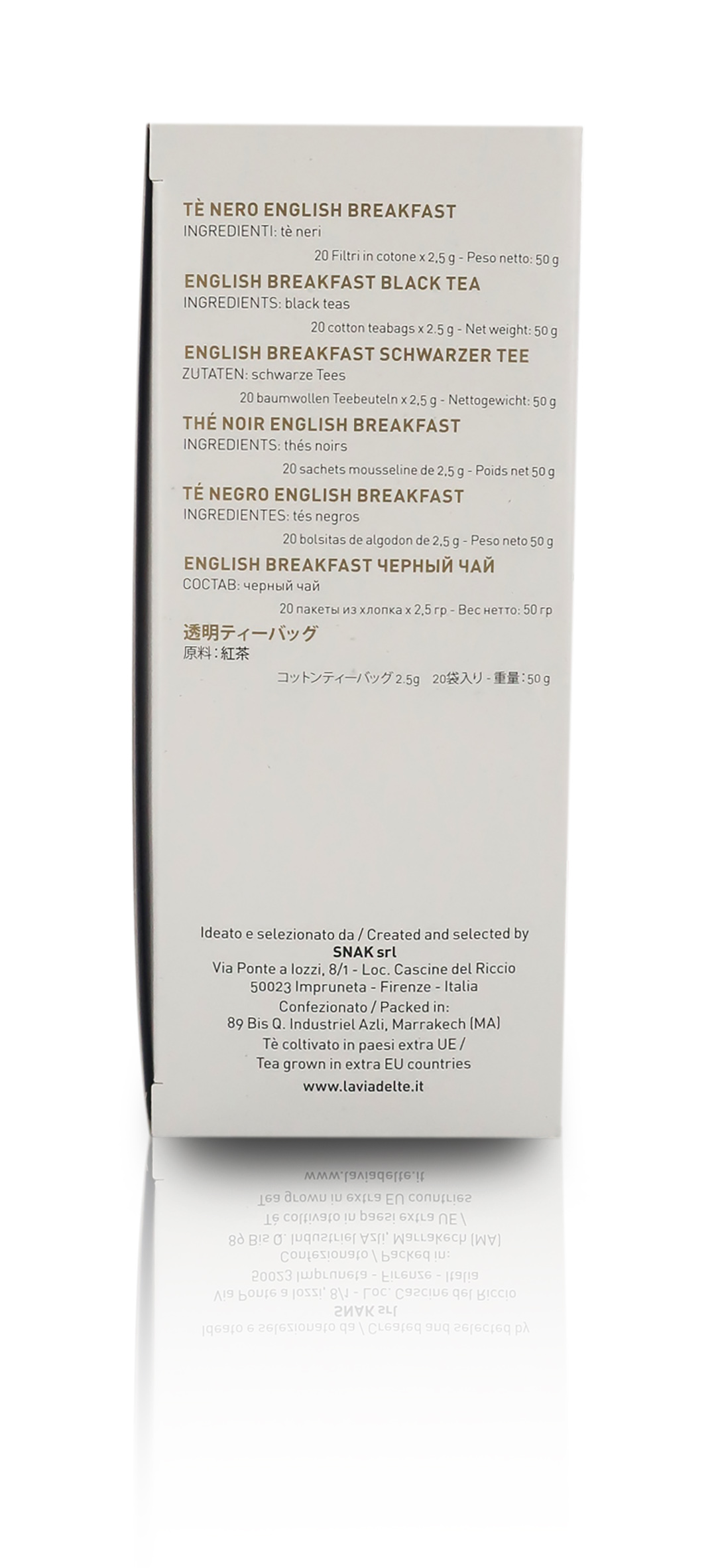 Miscela di tè neri a foglia spezzata, ideale per la prima colazione, dolce o salata. Dall'aroma e profumo di legni e spezie, vanta un bel colore rosso scuro e un gusto pieno, leggermente tannico.