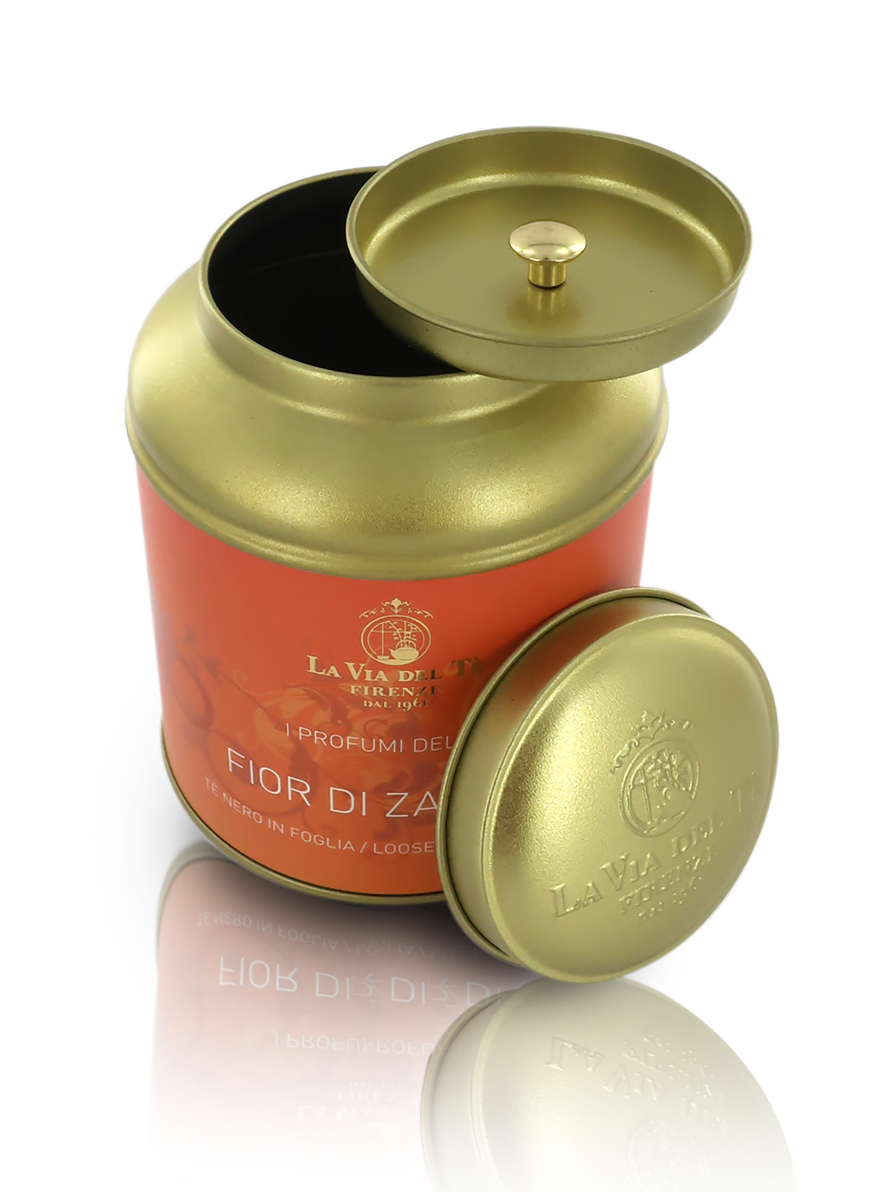La Via del Tè "Fior di Zagara", Tè Nero Profumato all'Arancia, Tè Nero in Foglia con Scorze d'Arancia e Fiori d'Arancio in Barattolo di Latta, 100 Grammi