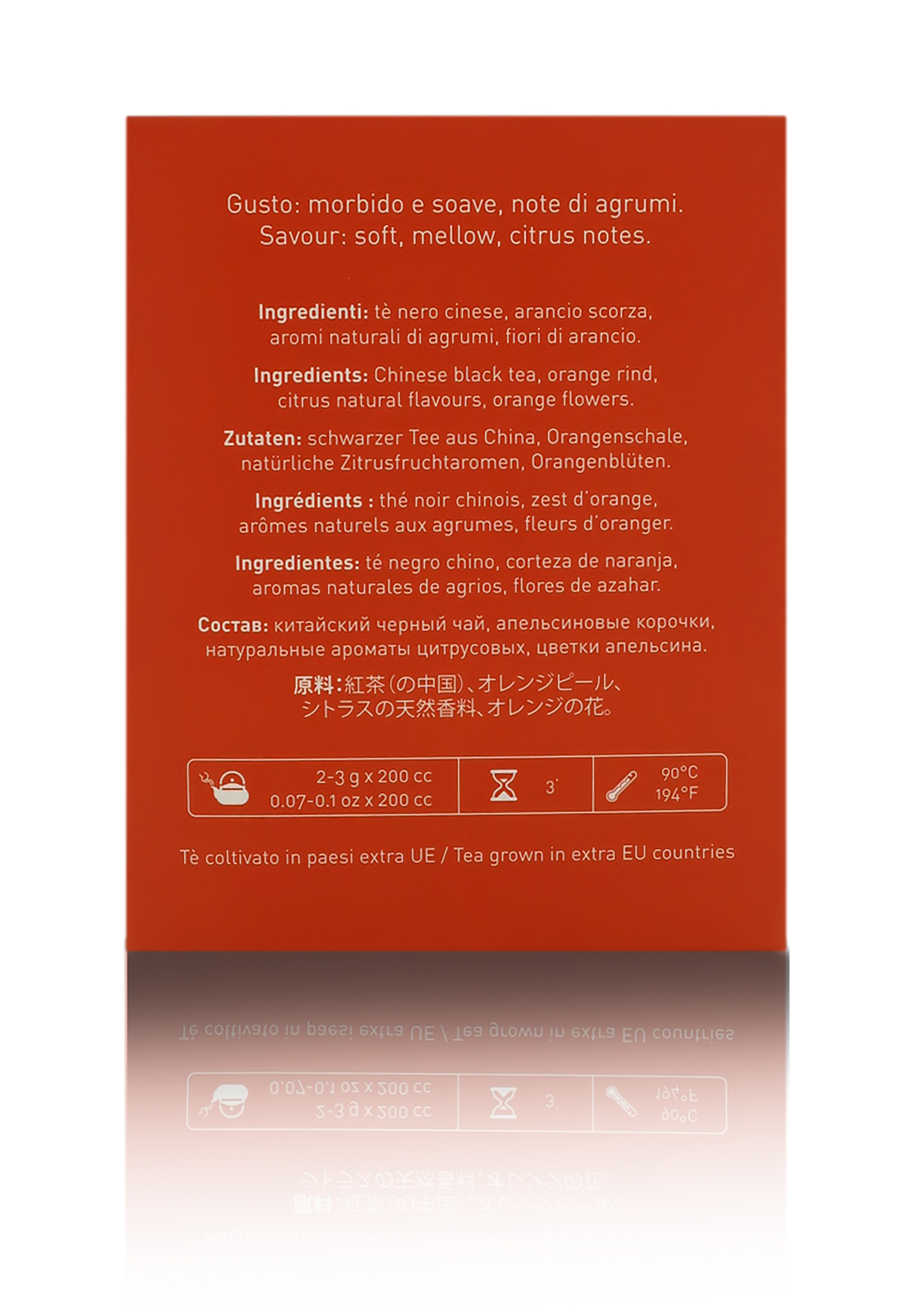 Ingredienti: Tè nero, scorze d'arancio, fiori d'arancio, aromi.