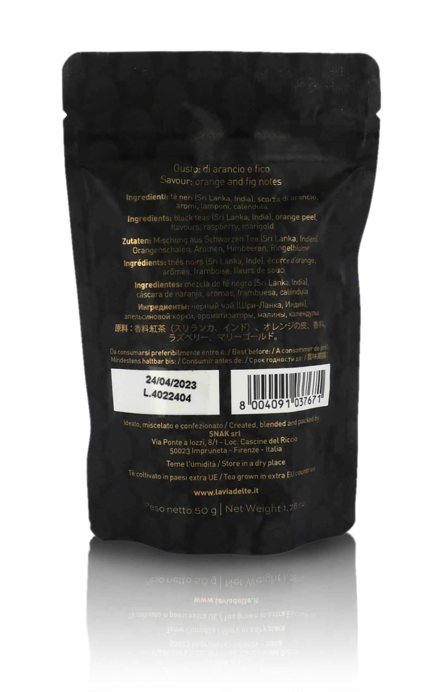 Ingredienti: tè neri, scorza di arancia, aromi, lamponi, calendula.