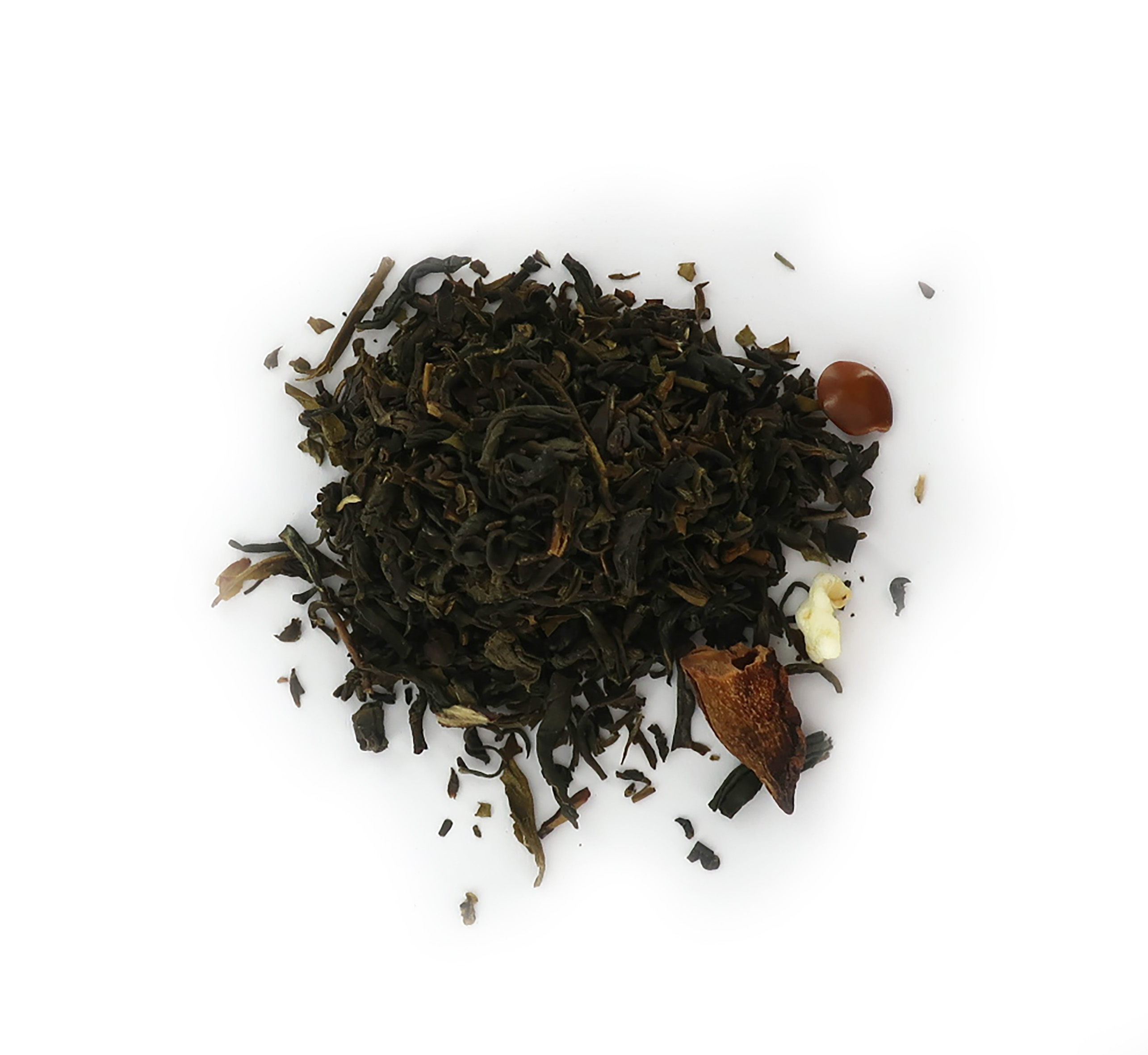Una versione di tè molto natalizia, a base di tè nero profumato con olio essenziale di zenzero e petali di fiori. A dare una nota decisamente natalizia, profumi tipici di questo periodo magico dell'anno, come ciliegia, pan di zenzero e mandorla amara. Per dare a questo tè di Natale una maggiore carica fruttata, la miscela è arricchita con scorze d'arancia e mele.
