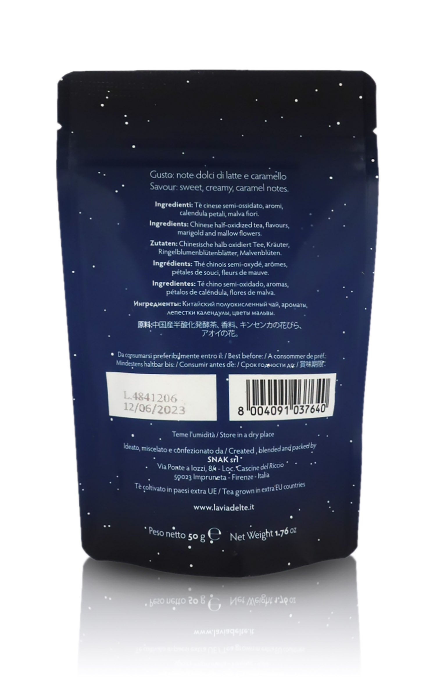 In pratico sacchetto richiudibile da 50g, dotato di comodissima chiusura a striscia.