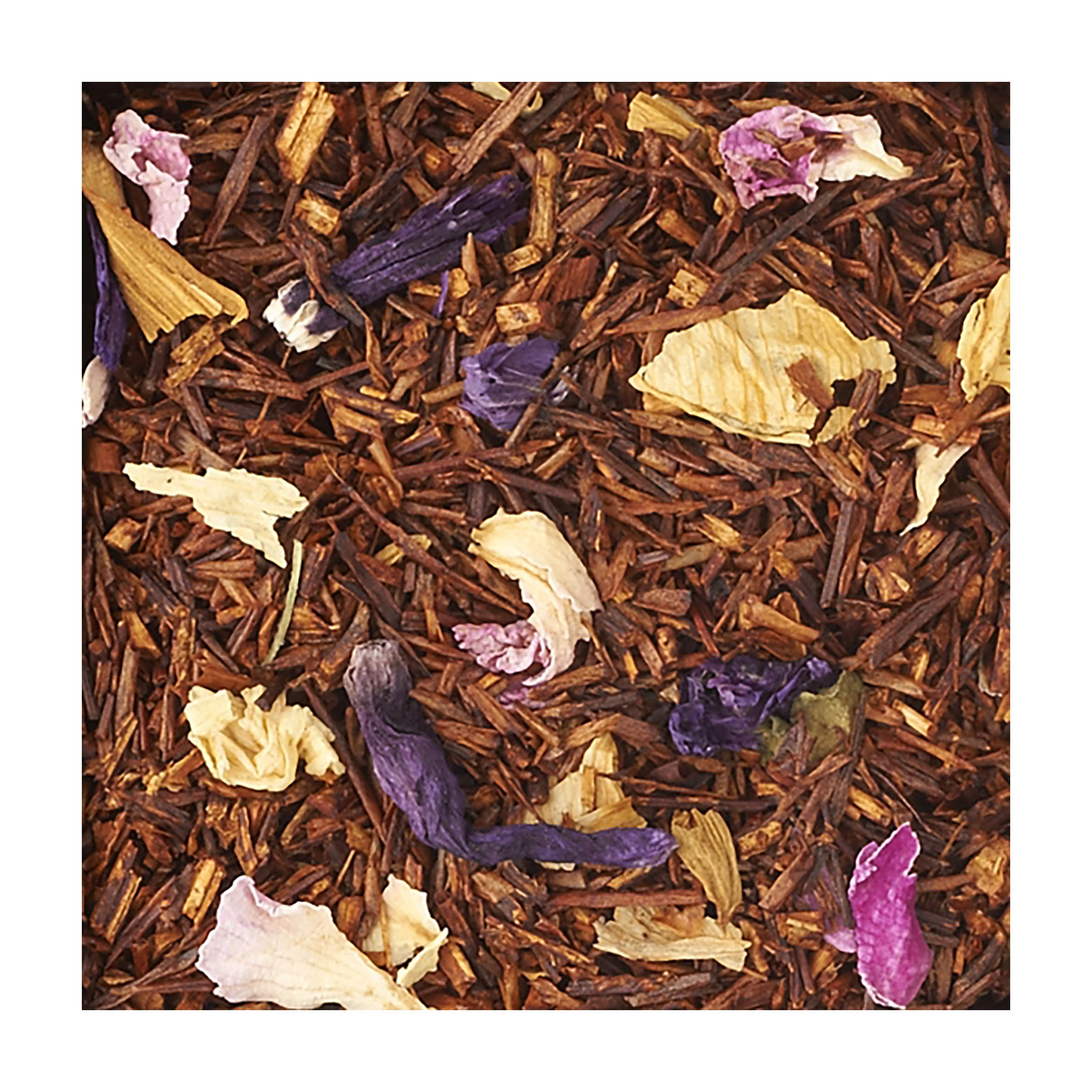 Questa speciale miscela di rooibos sfusa include petali di rosa, malva e girasole, per creare in tazza una bevanda dall'aroma soave e intenso di crème caramel.