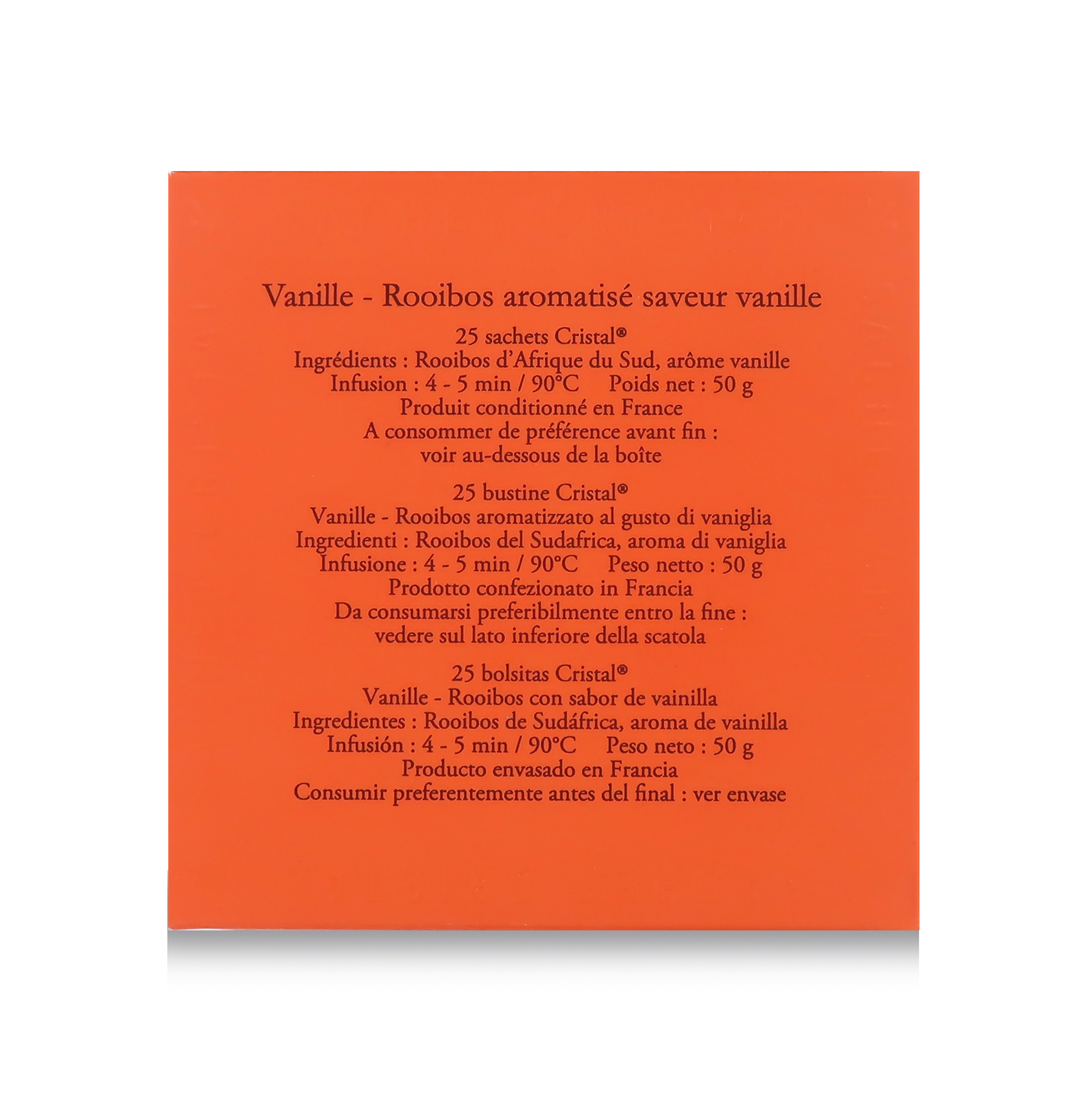 Questo rooibos alla vaniglia di Dammann Frères è contenuto in esclusive e pratiche bustine "Cristal".