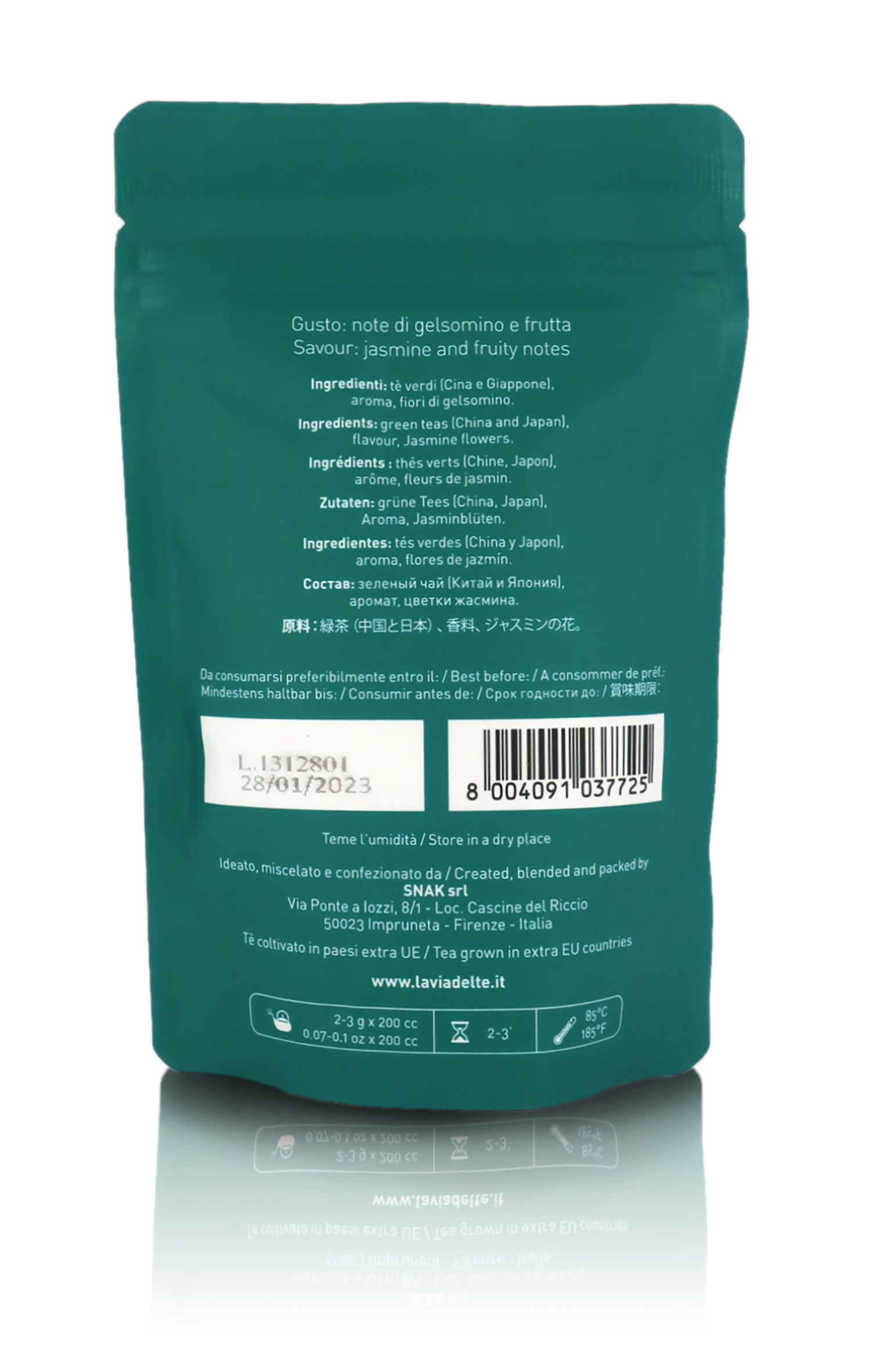 Ingredienti: Tè verde, gelsomino, fiori.