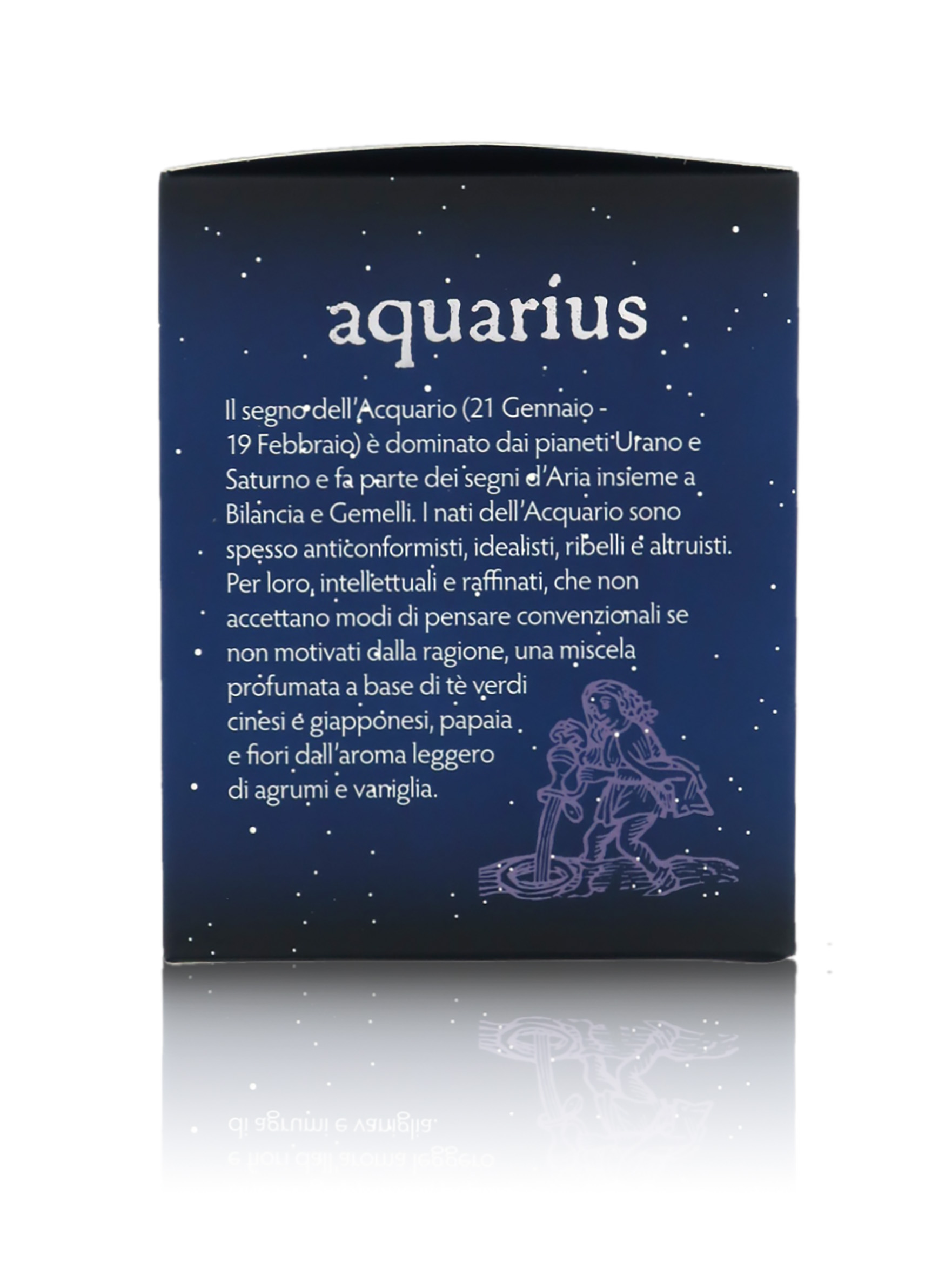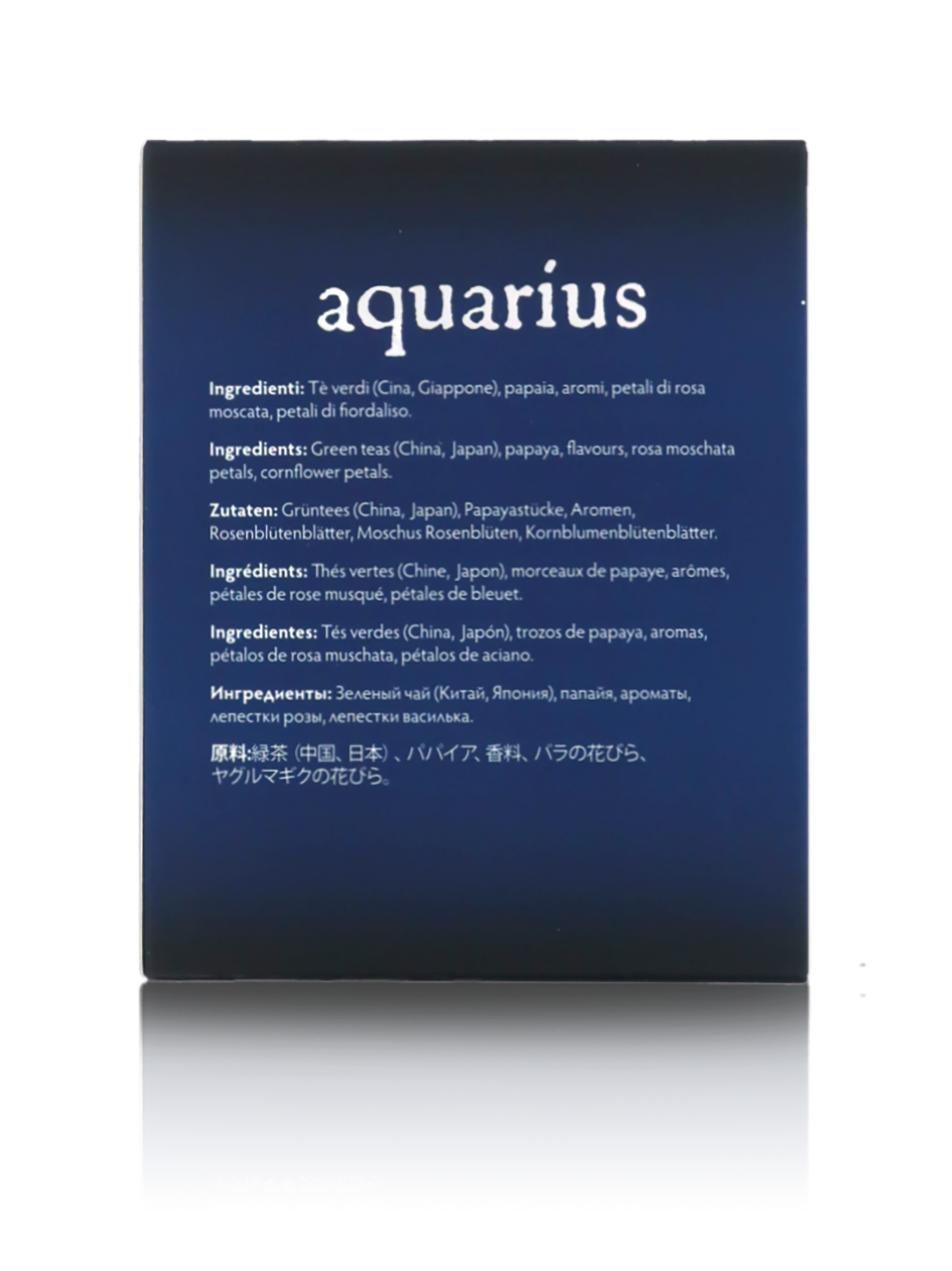 Miscela sfusa di tè verdi, piacevolmente profumata, dedicata al segno dell'Acquario (segno d'aria, come la Bilancia e i Gemelli). I nati sotto il segno dell'Acquario (21 Gennaio - 19 Febbraio), governati dagli influssi dei pianeti Urano e Saturno, si distinguono per altruismo, intelletto e innato idealismo. Di carattere anticonformista, hanno una spiccata propensione alla ribellione, sempre però corroborata dalla ragione e dalla logica.