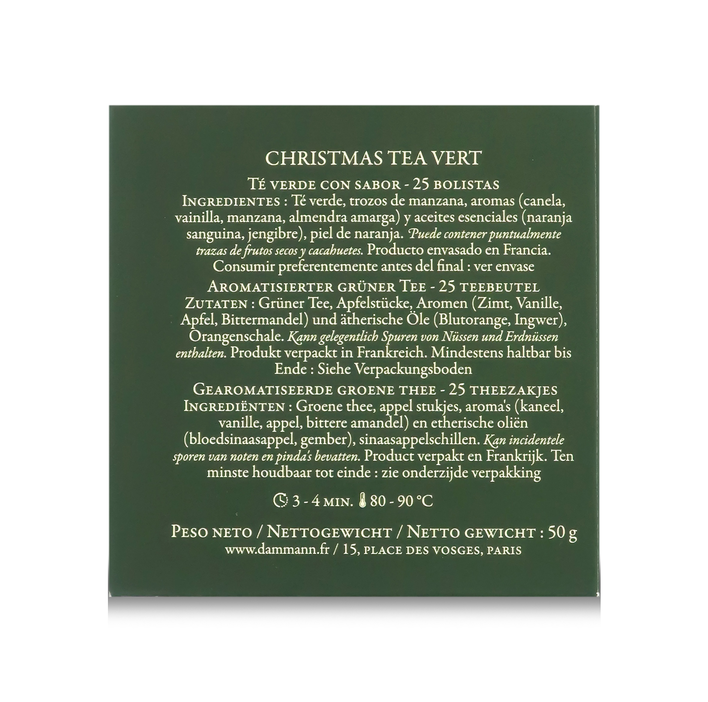 Christmas Tea Vert, Tè Verde Di Natale Aromatizzato, 25 Filtri Cristal, 50 Grammi, Dammann Frères