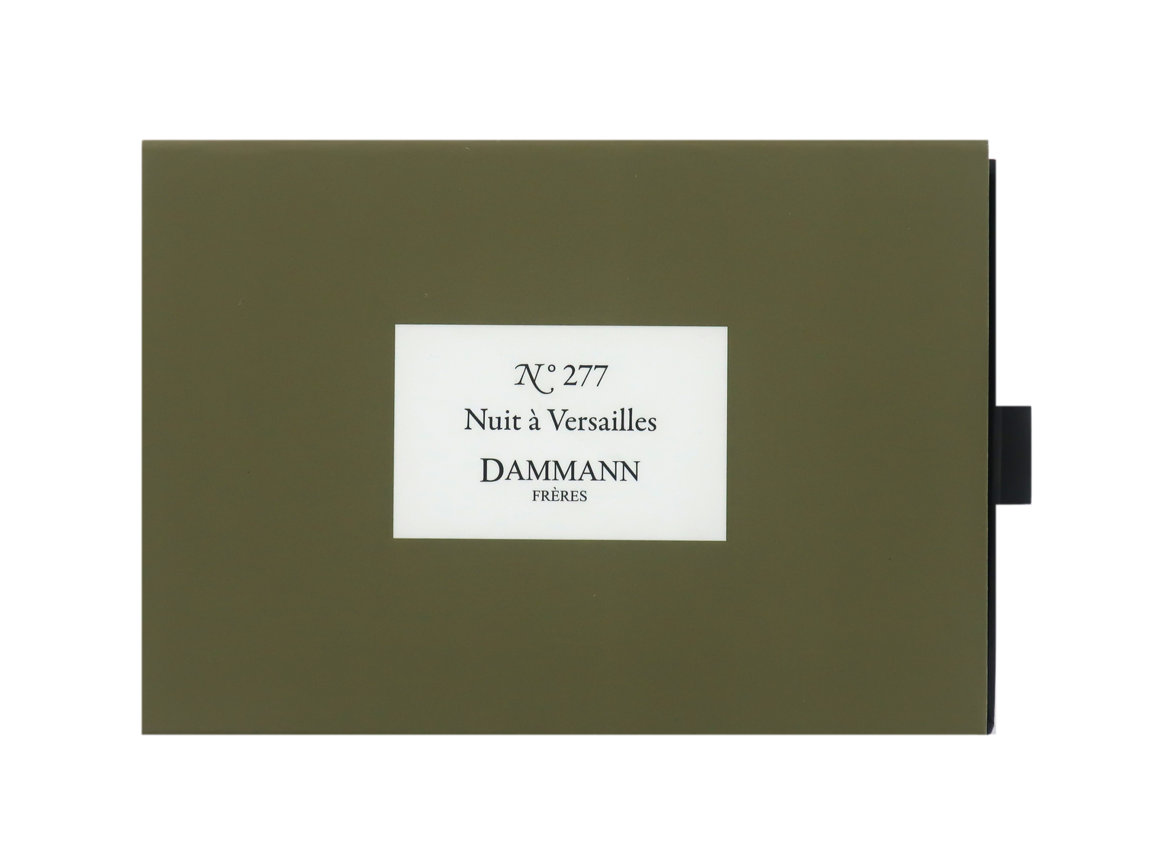 Questa confezione regalo chiamata "N° 277" è un piccolo kit dalla pratica apertura a cassetto. Contiene l'iconico tè verde "Nuit à Versailles" sfuso (in barattolino di latta da 30g) e un infusore abbellito da un alberello d'arancio in miniatura in resina metallizzata.