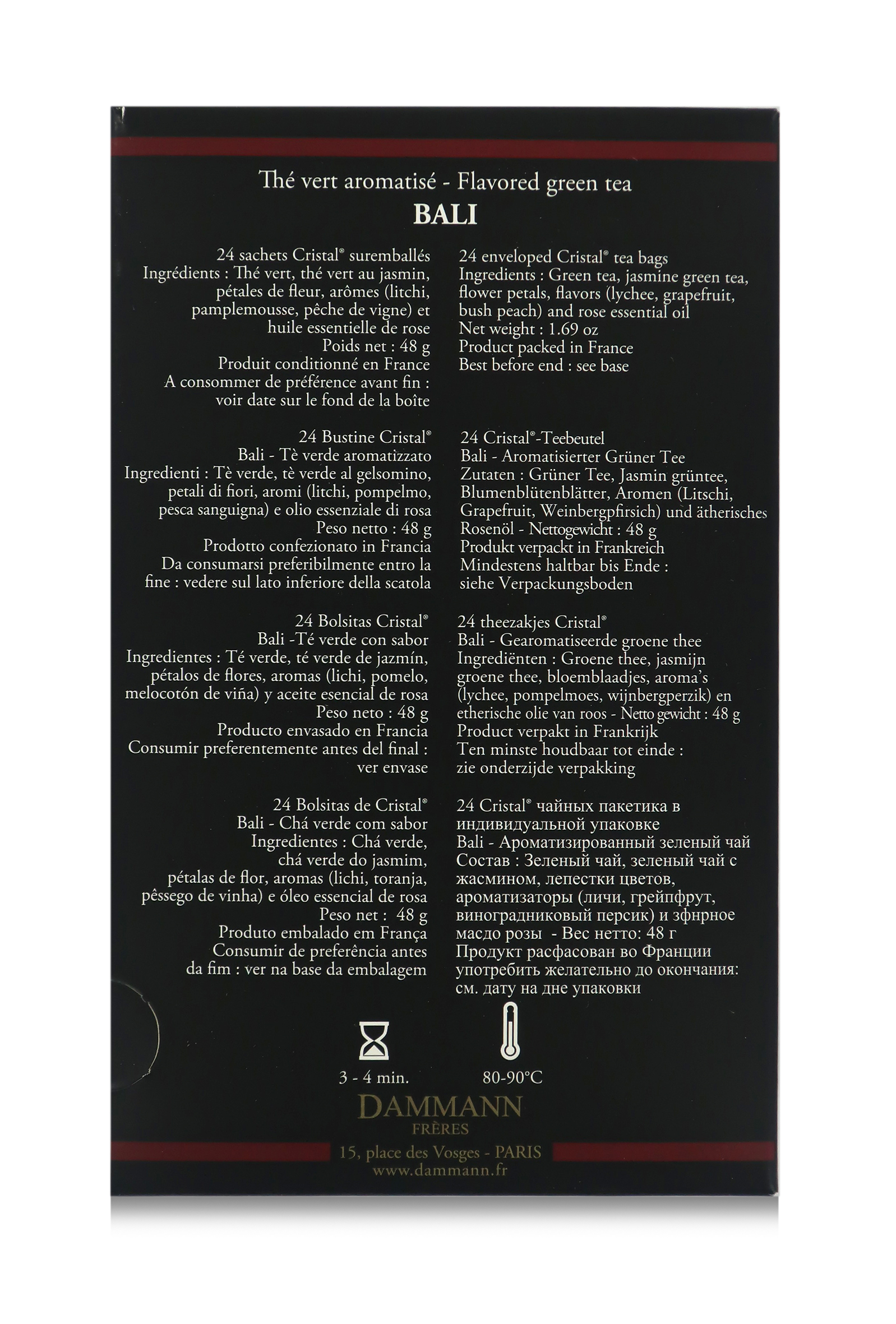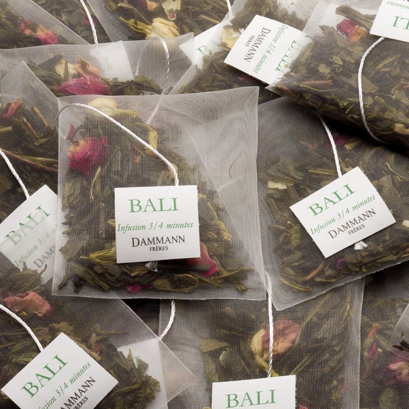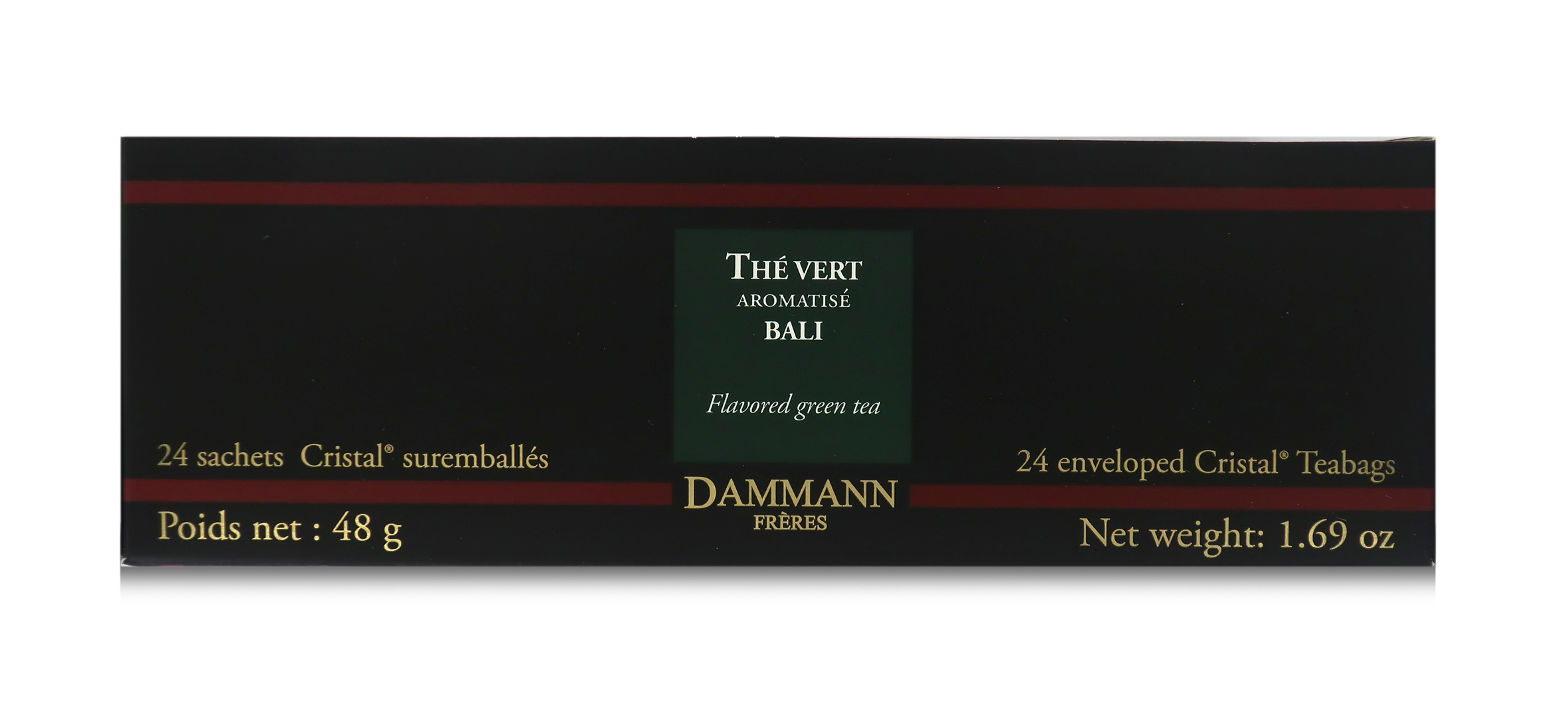 Il tè verde Bali di Dammann Frères è contenuto in esclusive e pratiche bustine "Cristal" incartate singolarmente.