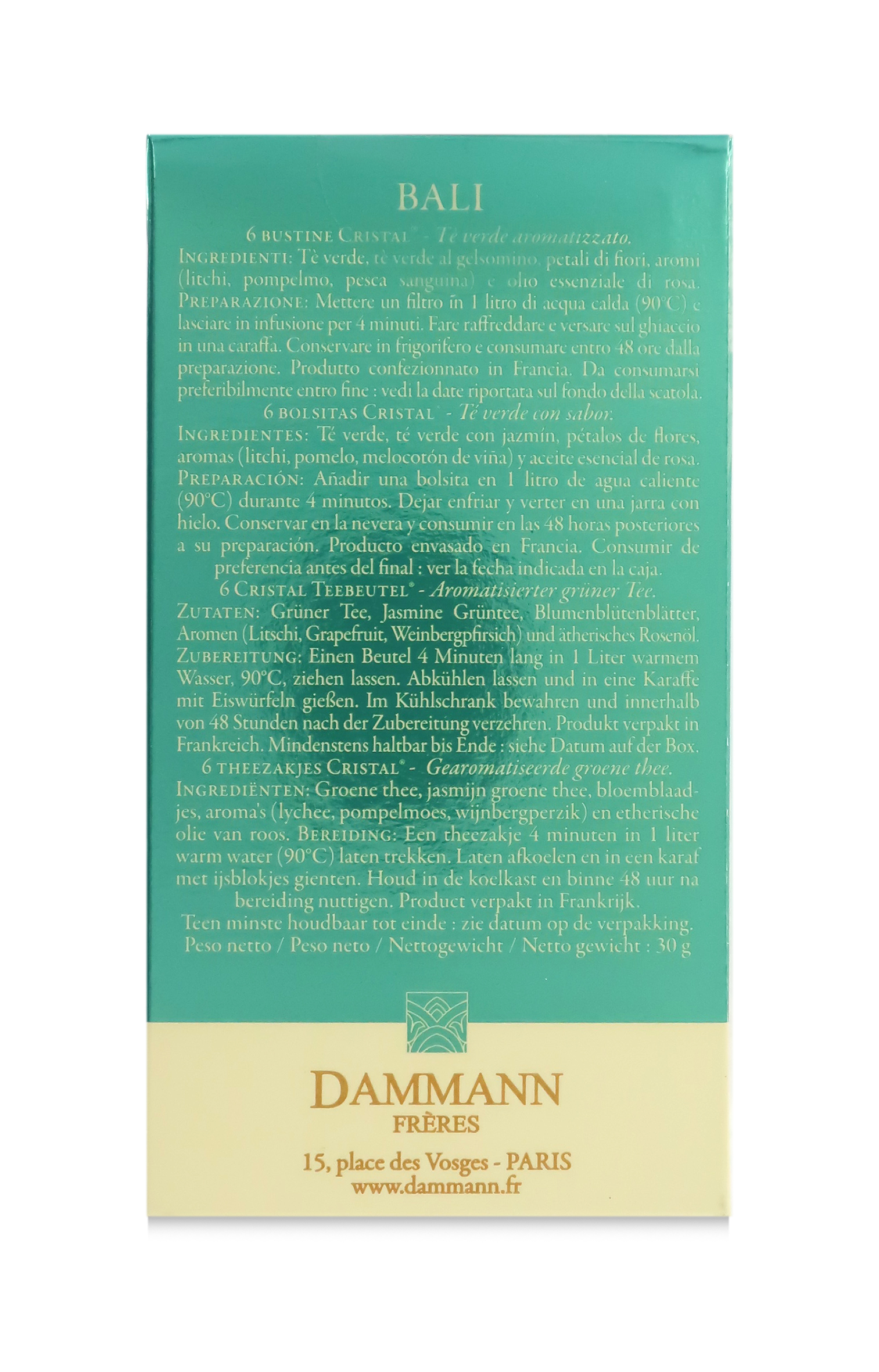 Dammann Bali, Tè Verde Freddo Aromatizzato Con Litchi, Pompelmo, Pesca, Rosa, 6 Filtri, Tot. 30 Grammi, Damman Frères